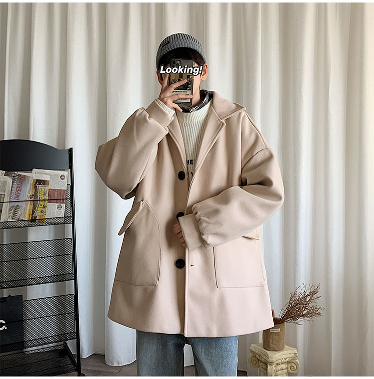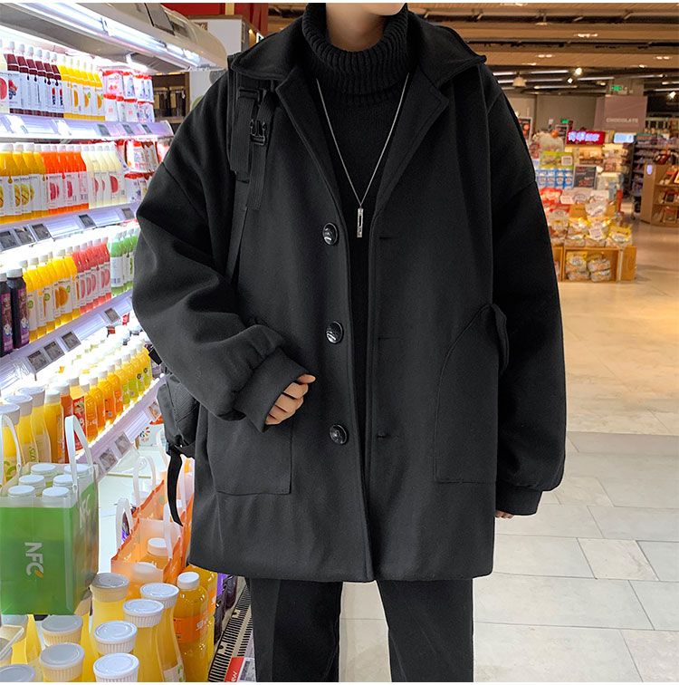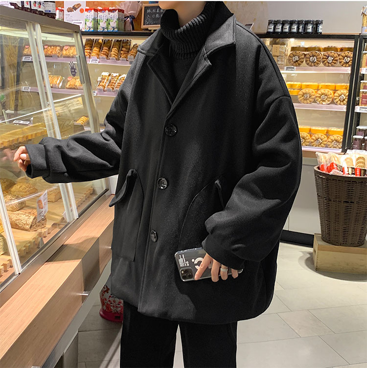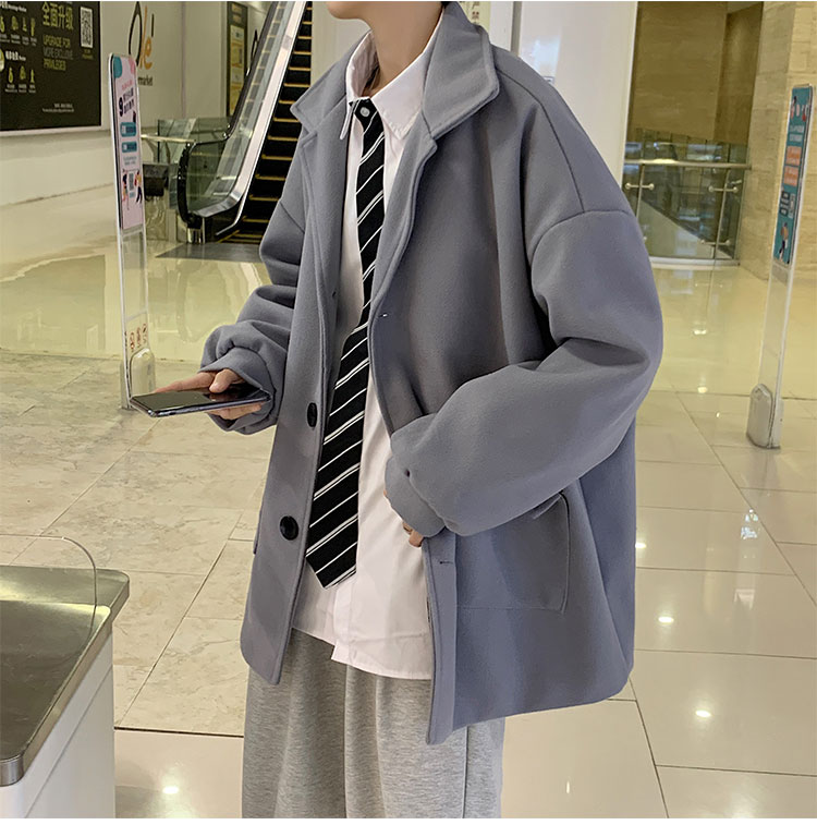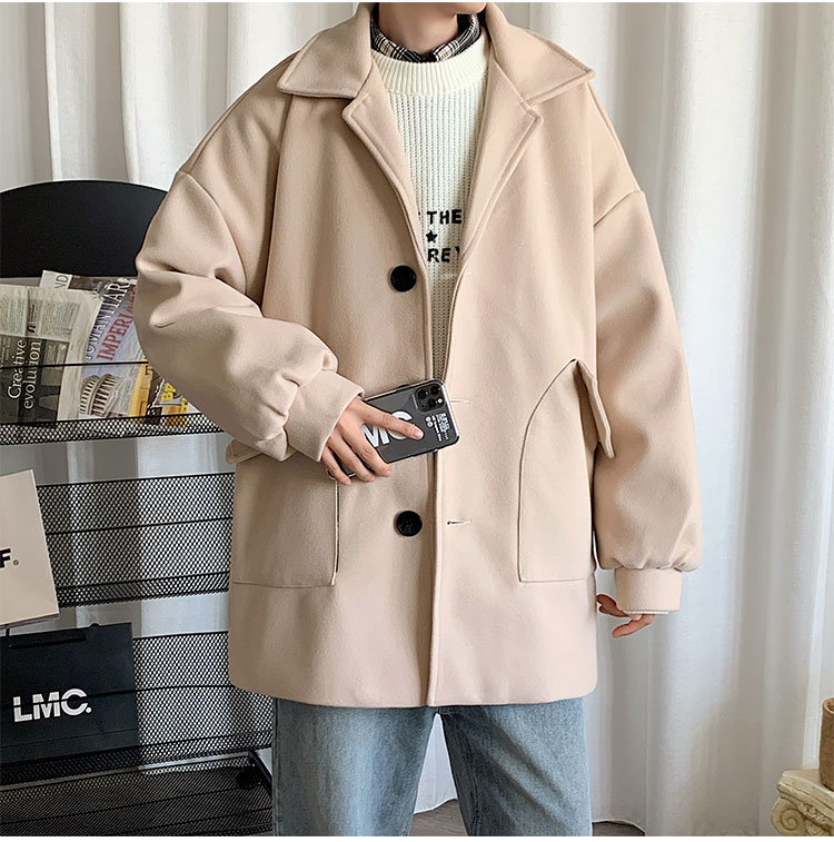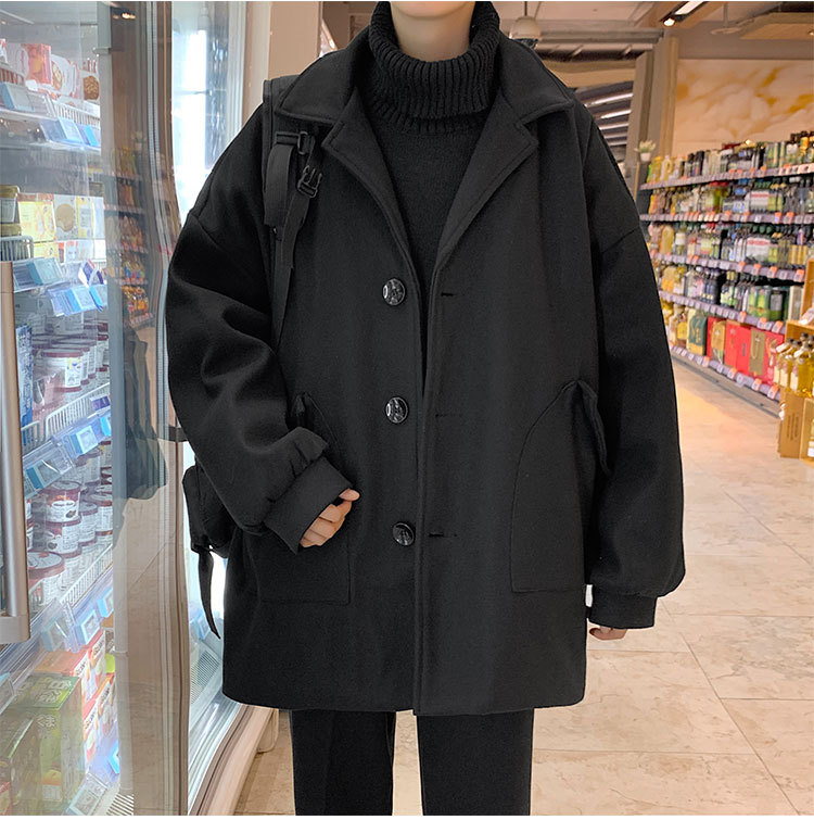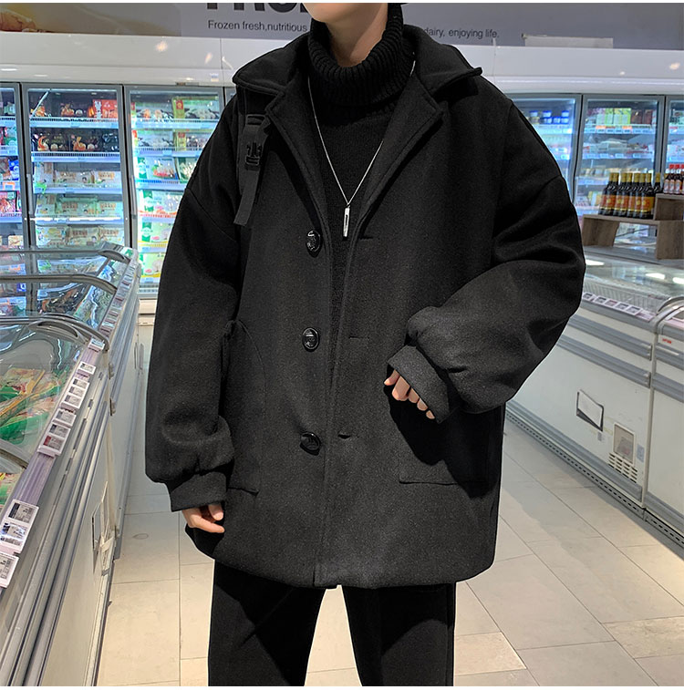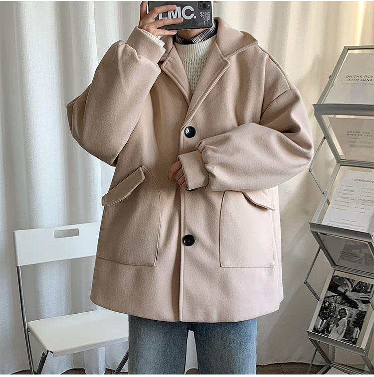 Демисезонное короткое трендовое шерстяное пальто, костюм, плащ, оверсайз, в корейском стиле