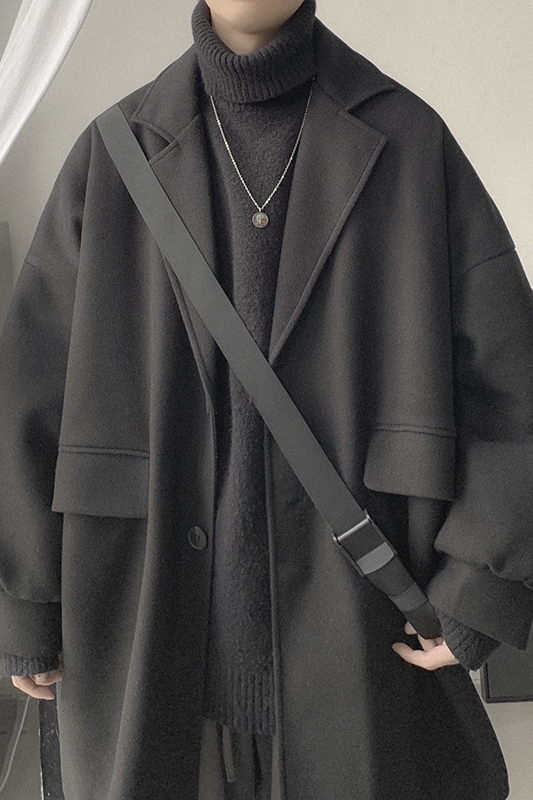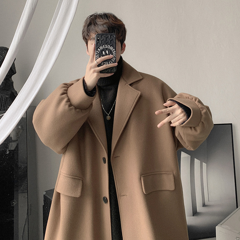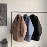 Демисезонное шерстяное пальто, трендовые длинные джинсы с начесом, в корейском стиле, средней длины