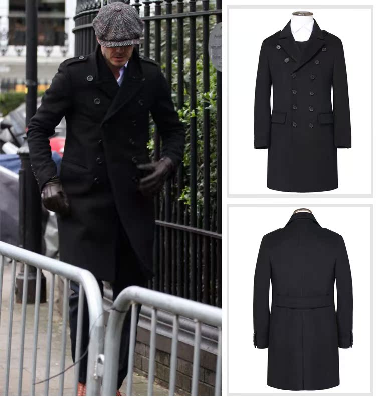 Демисезонное длинное приталенное черное шерстяное пальто, 2020