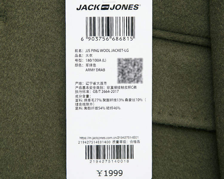 Jackjones Jack Jones осень и зима с ватой с ватной шелкой в длинном шерстяном пальто 219427514