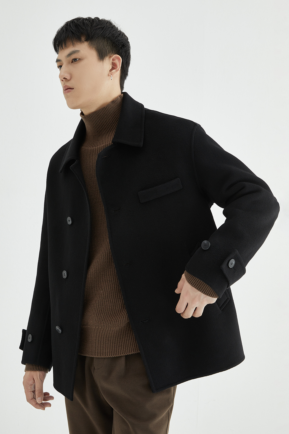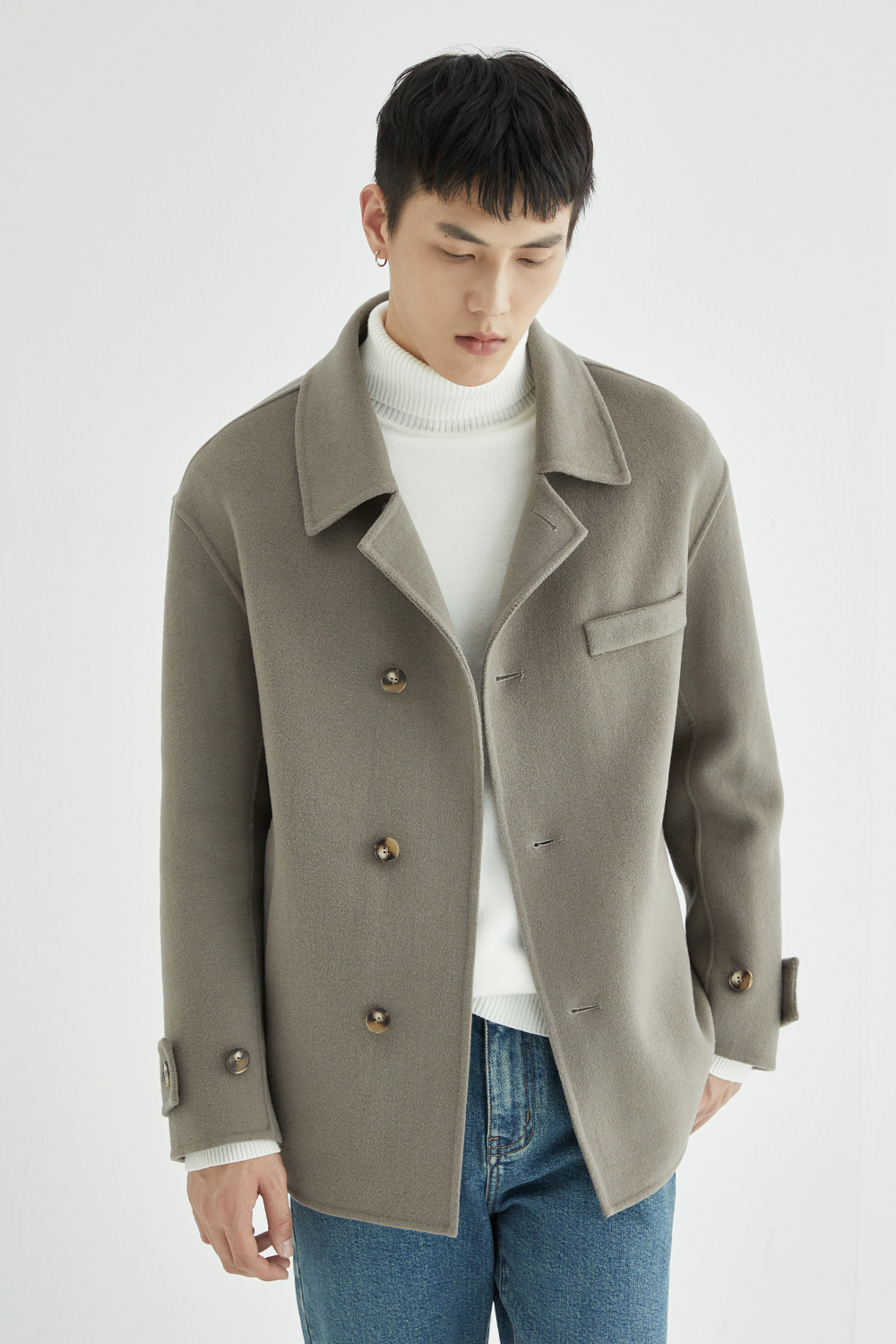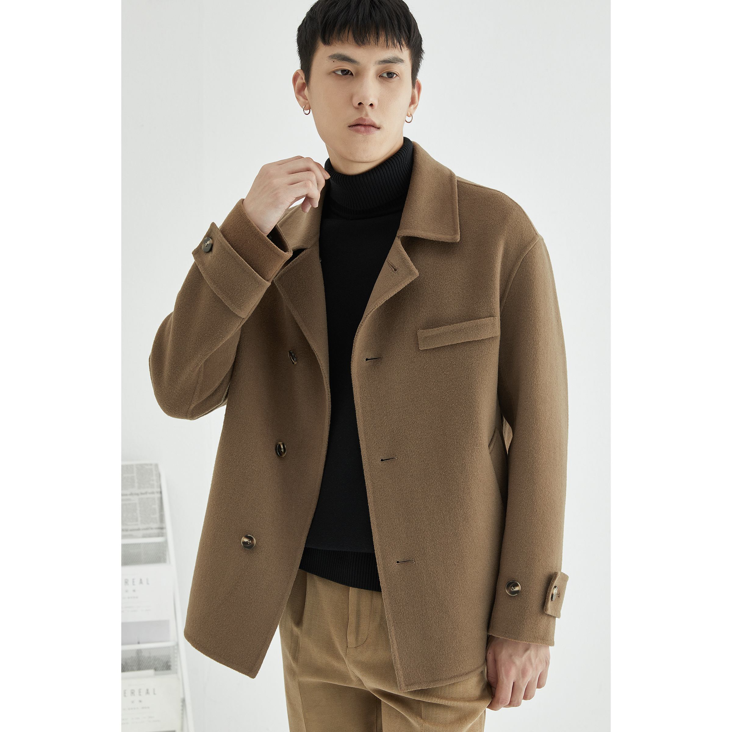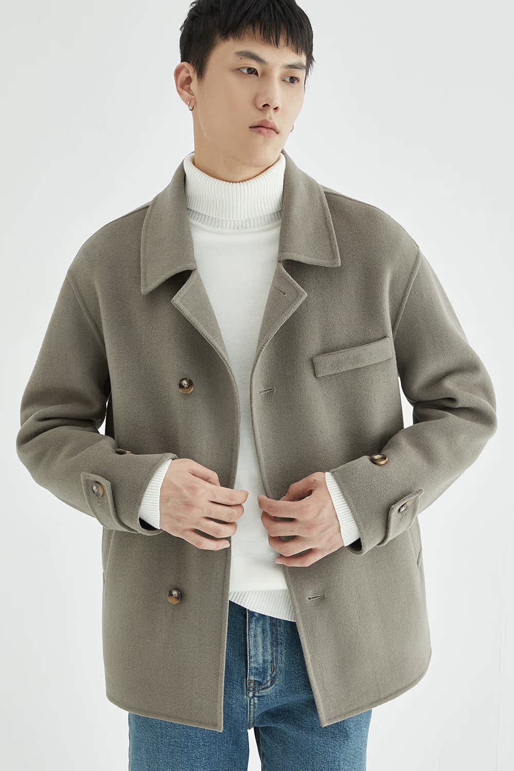 Зимнее шерстяное двусторонное короткое шерстяное пальто, куртка