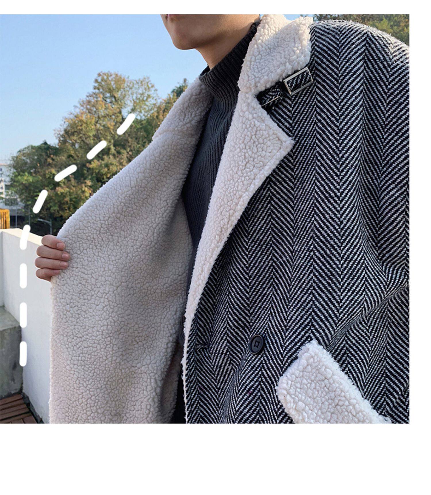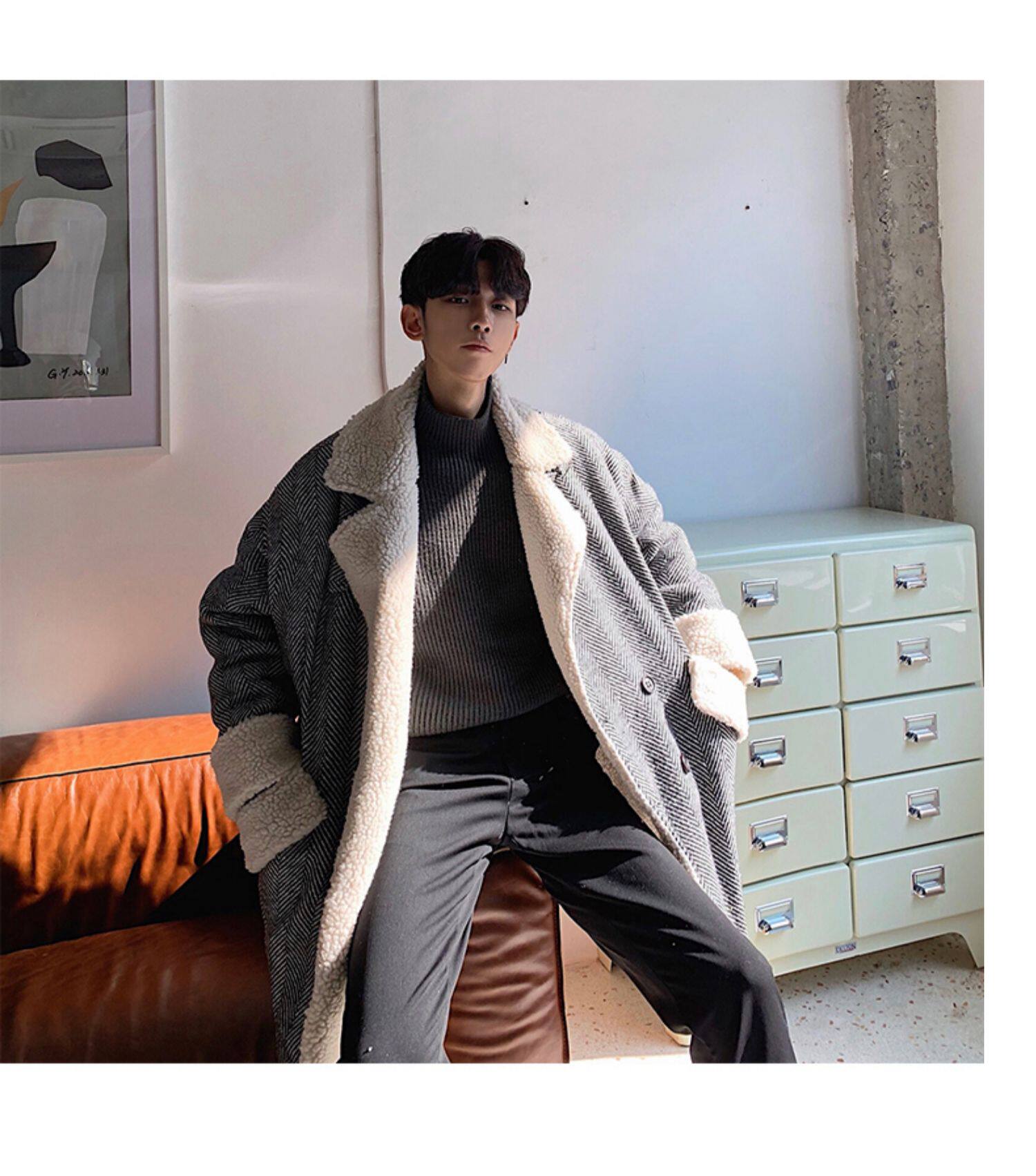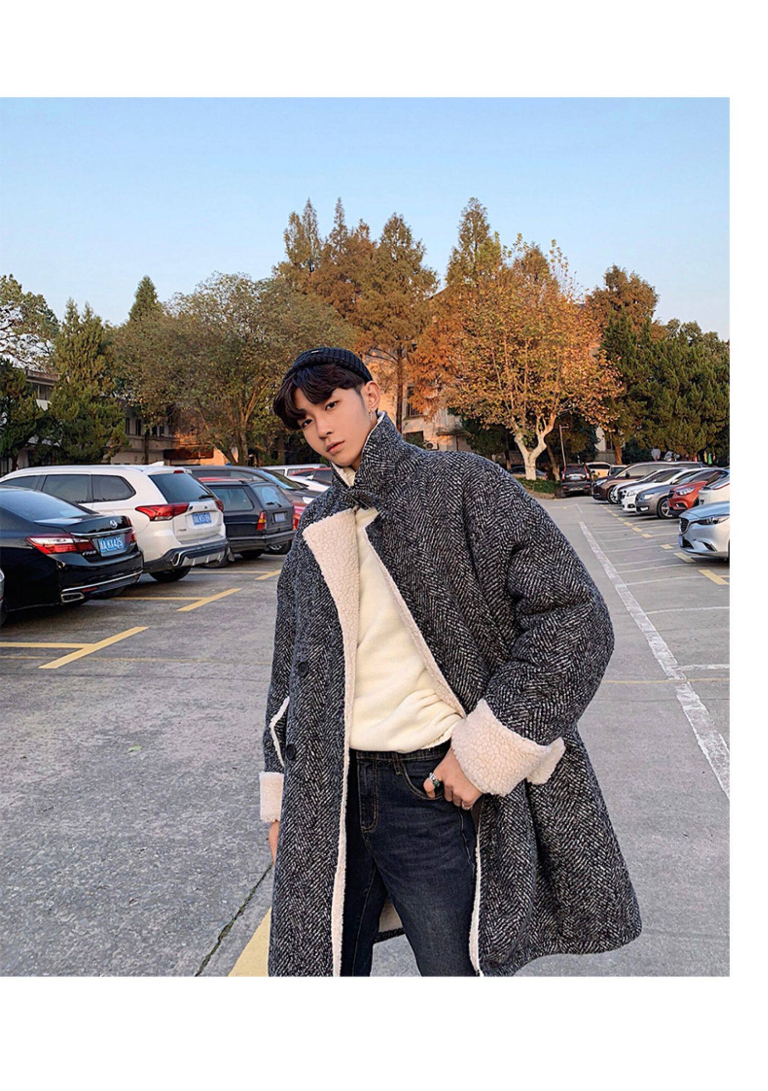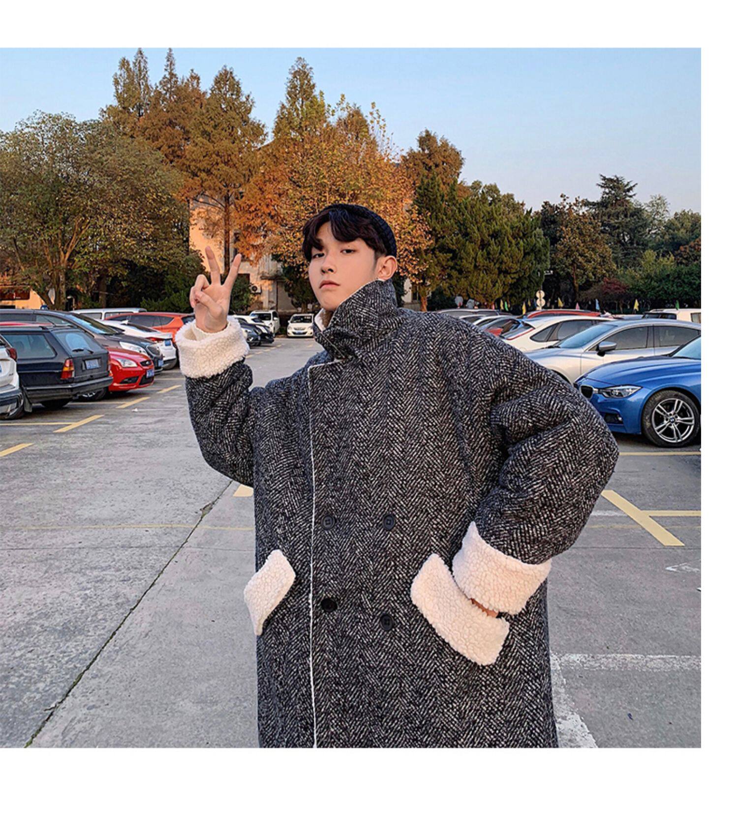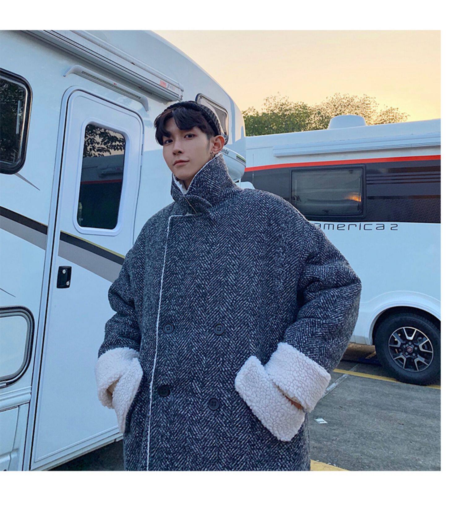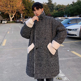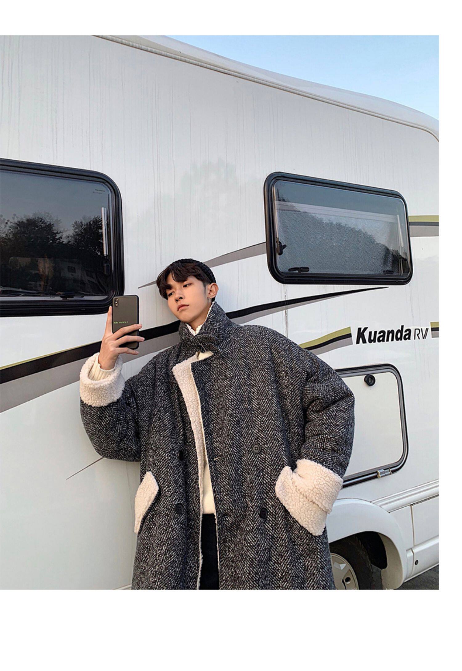 Длинное шерстяное пальто для мальчиков, утепленные джинсы с начесом, демисезонный трендовый ретро плащ, в корейском стиле