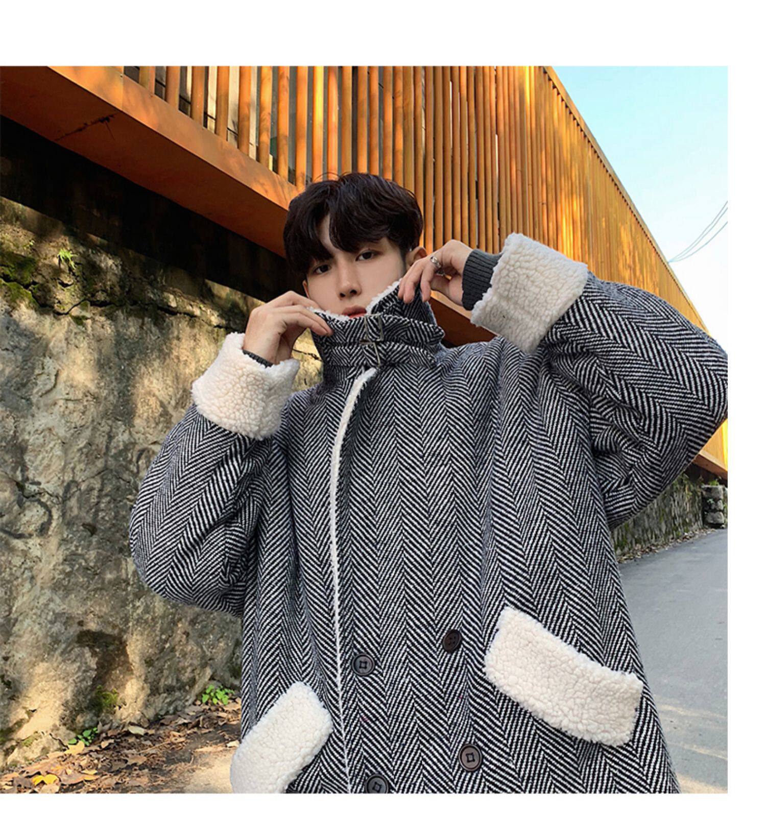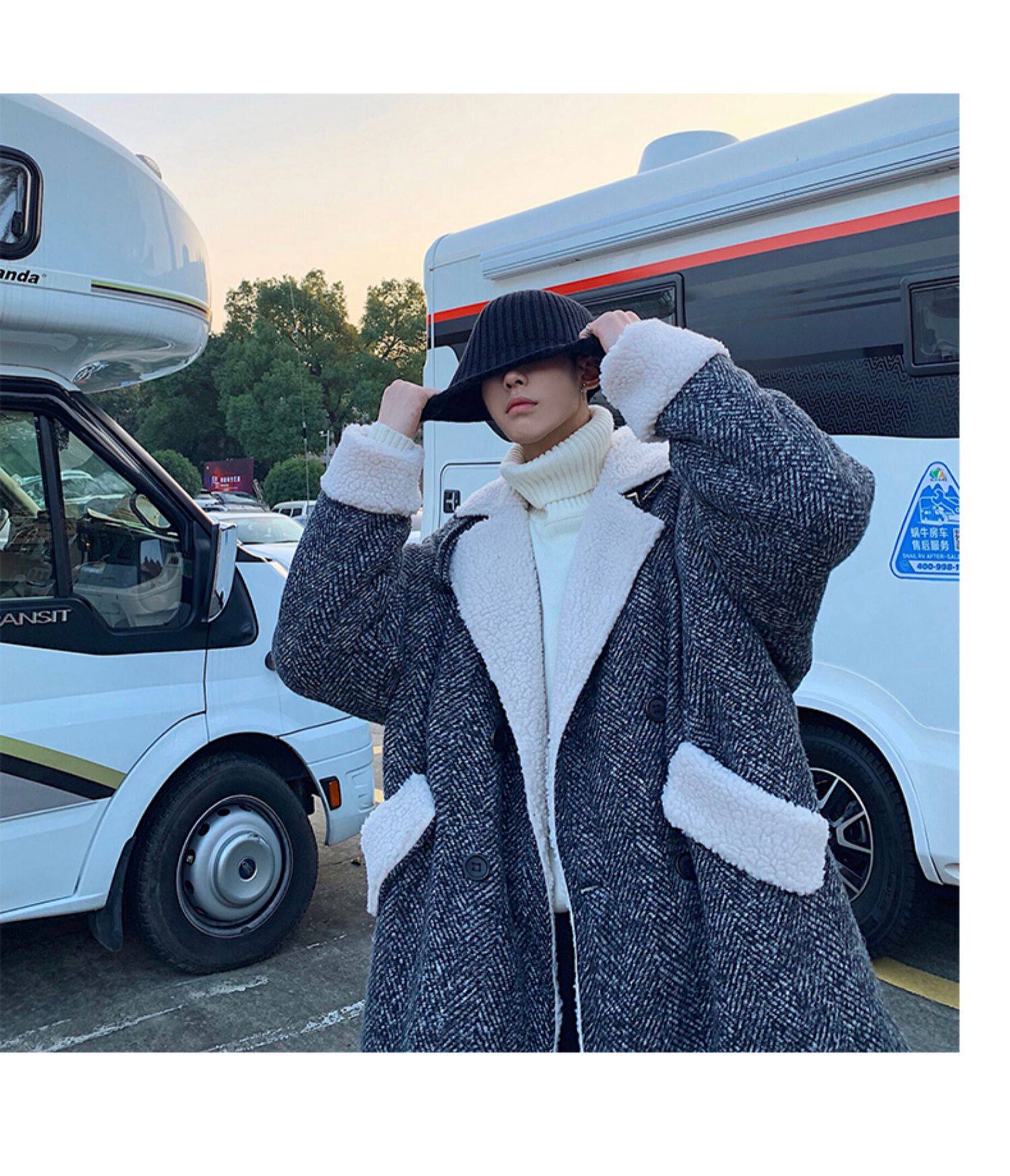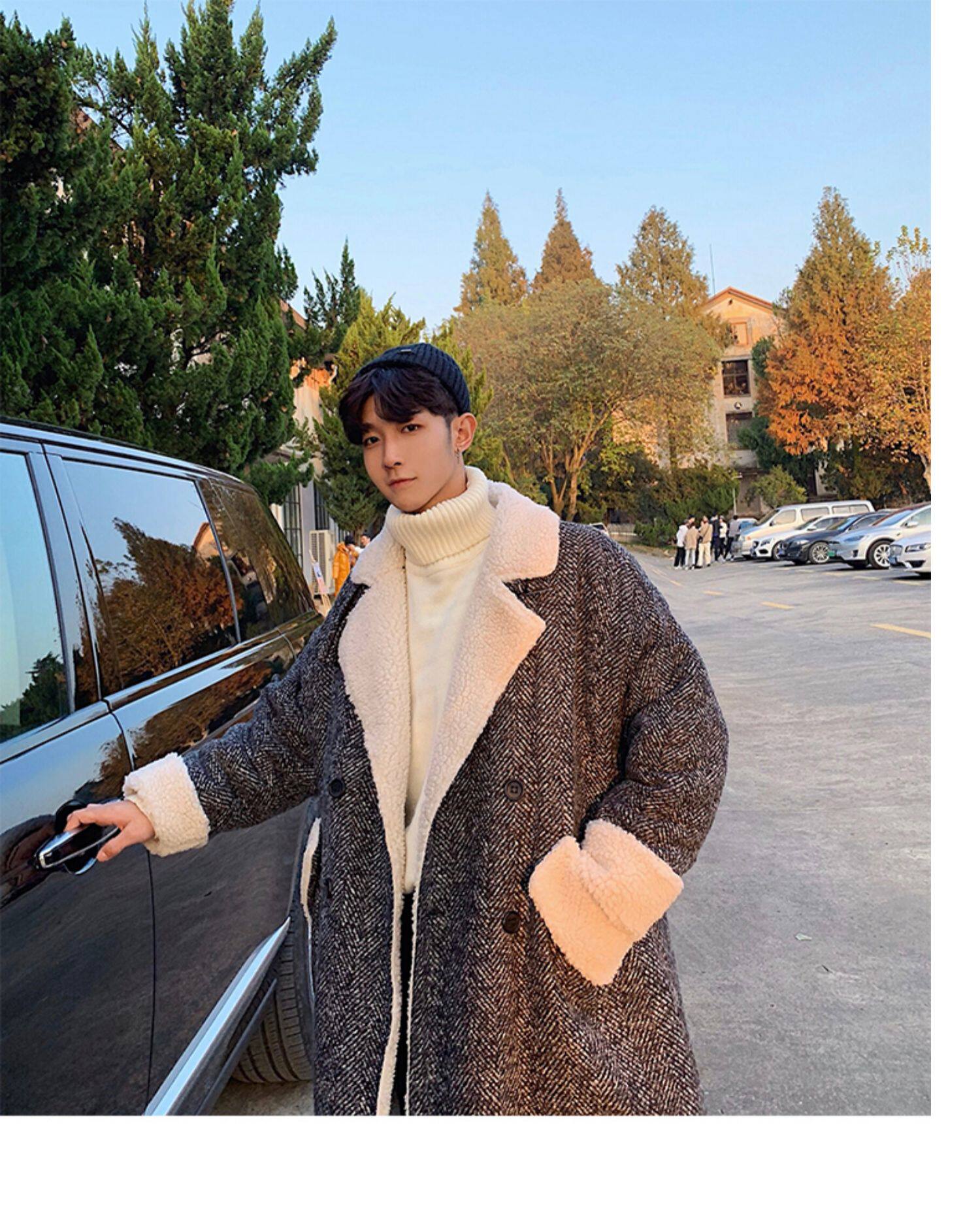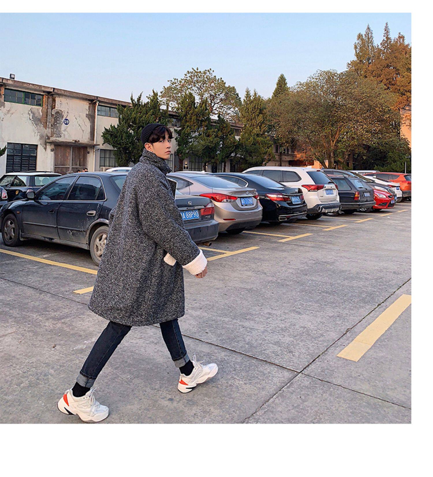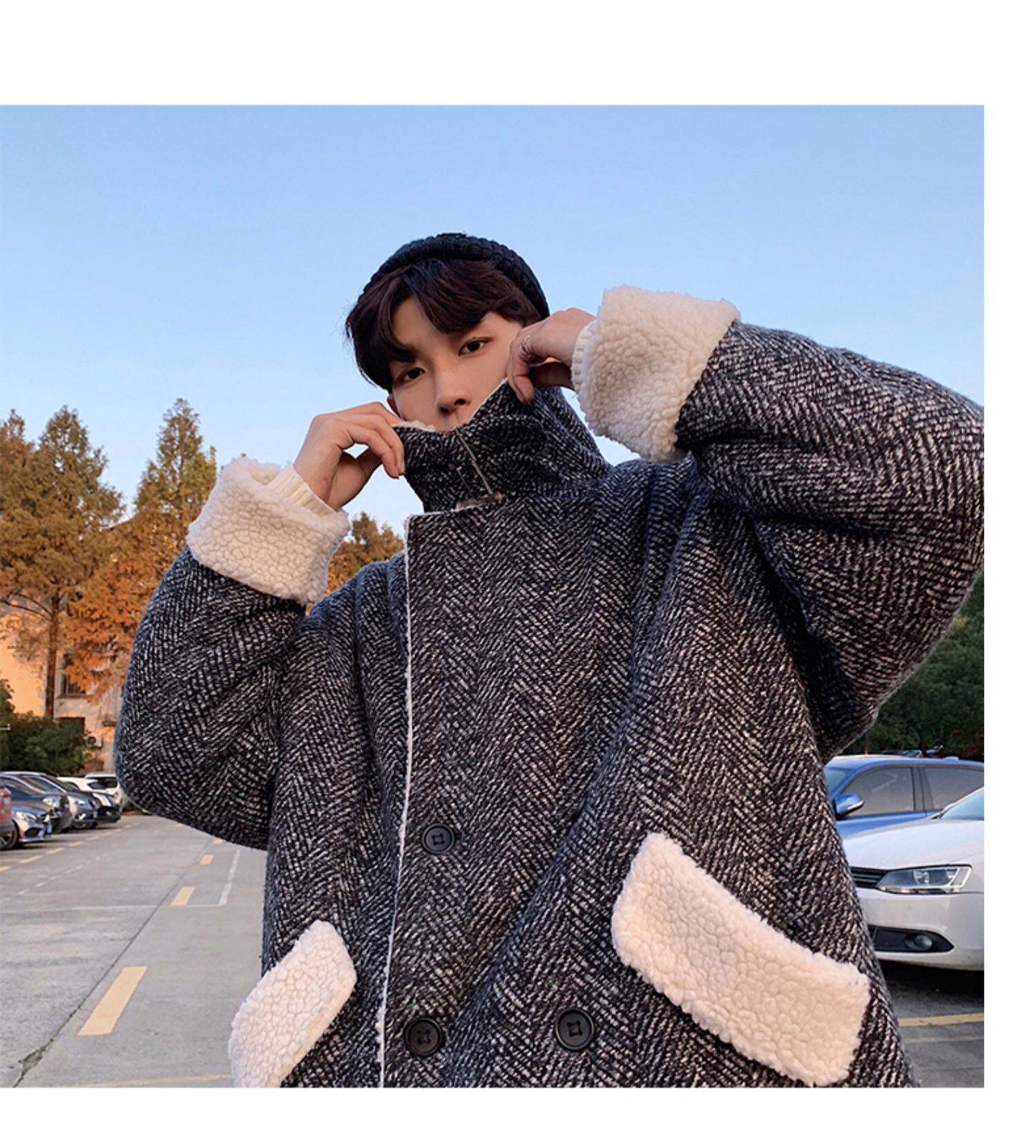 Длинное шерстяное пальто для мальчиков, утепленные джинсы с начесом, демисезонный трендовый ретро плащ, в корейском стиле