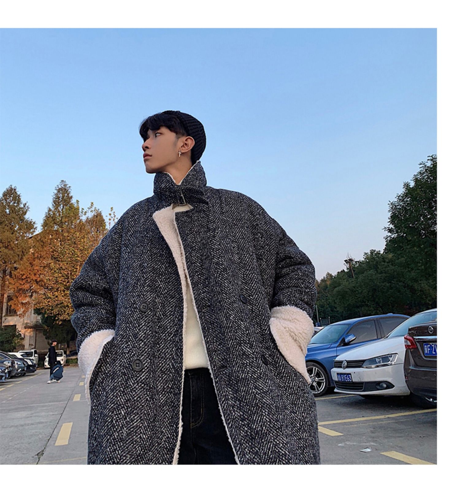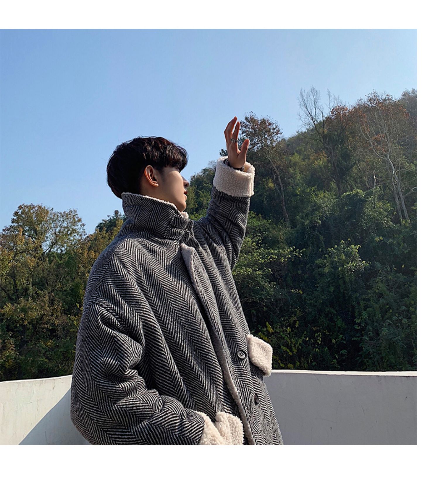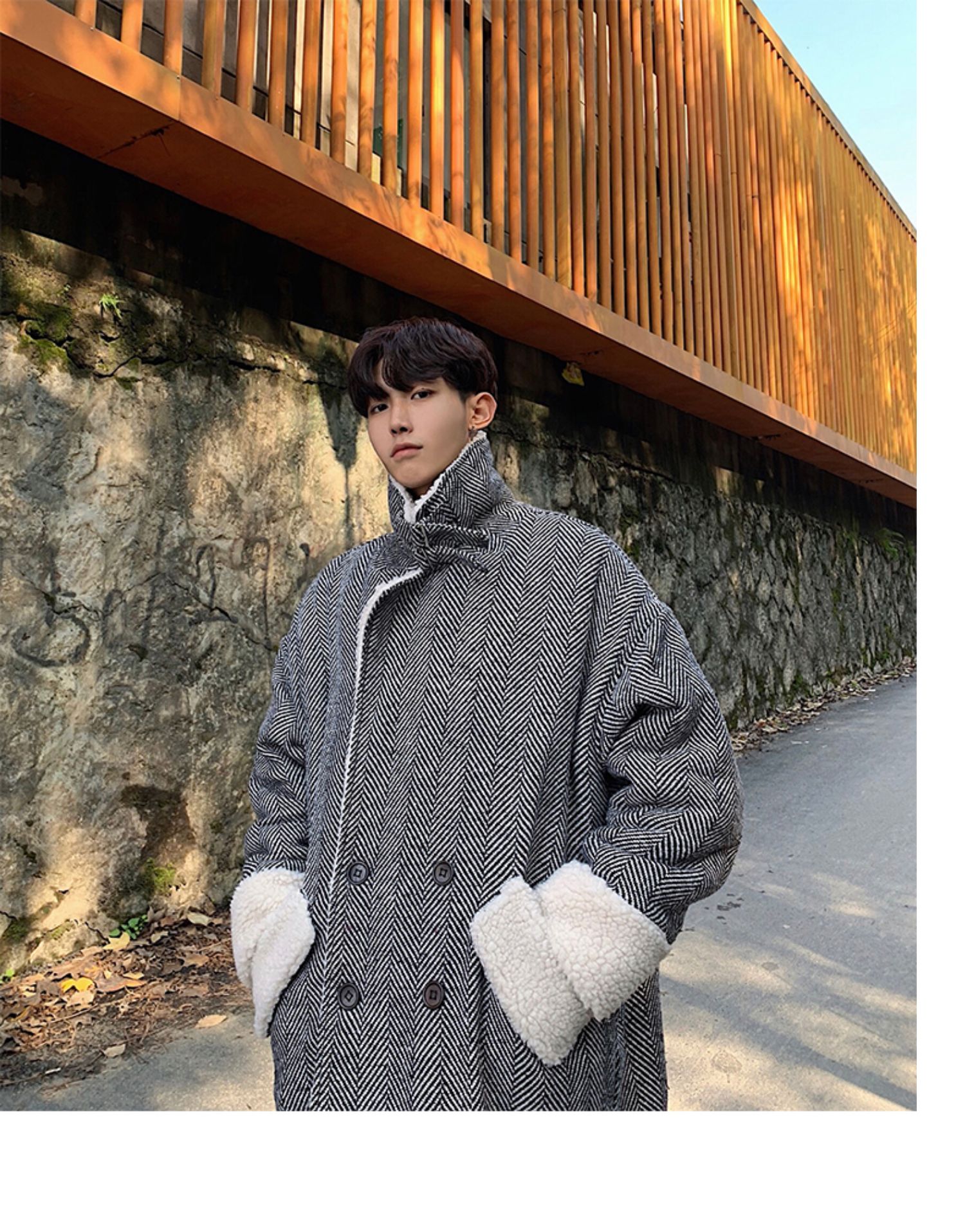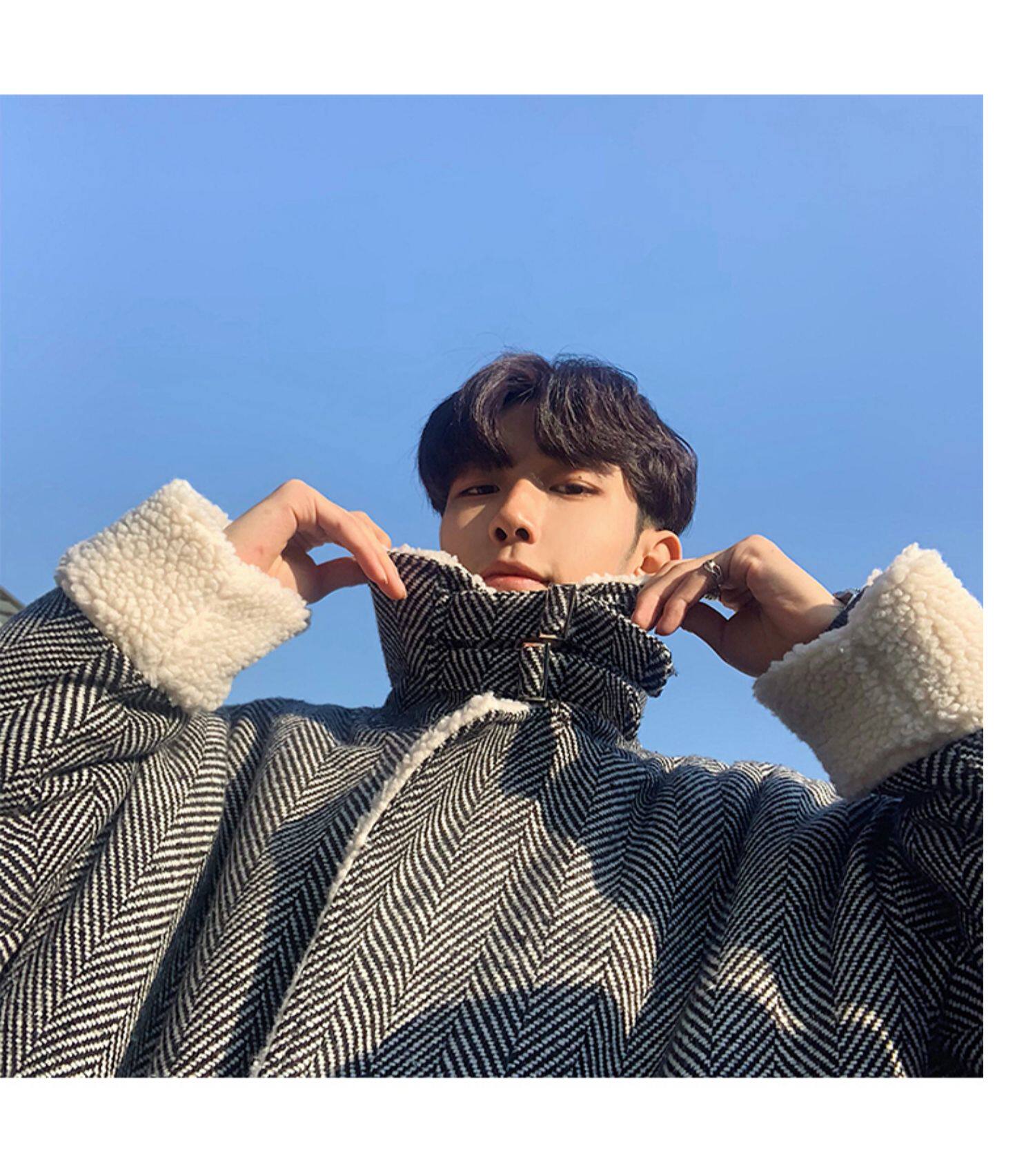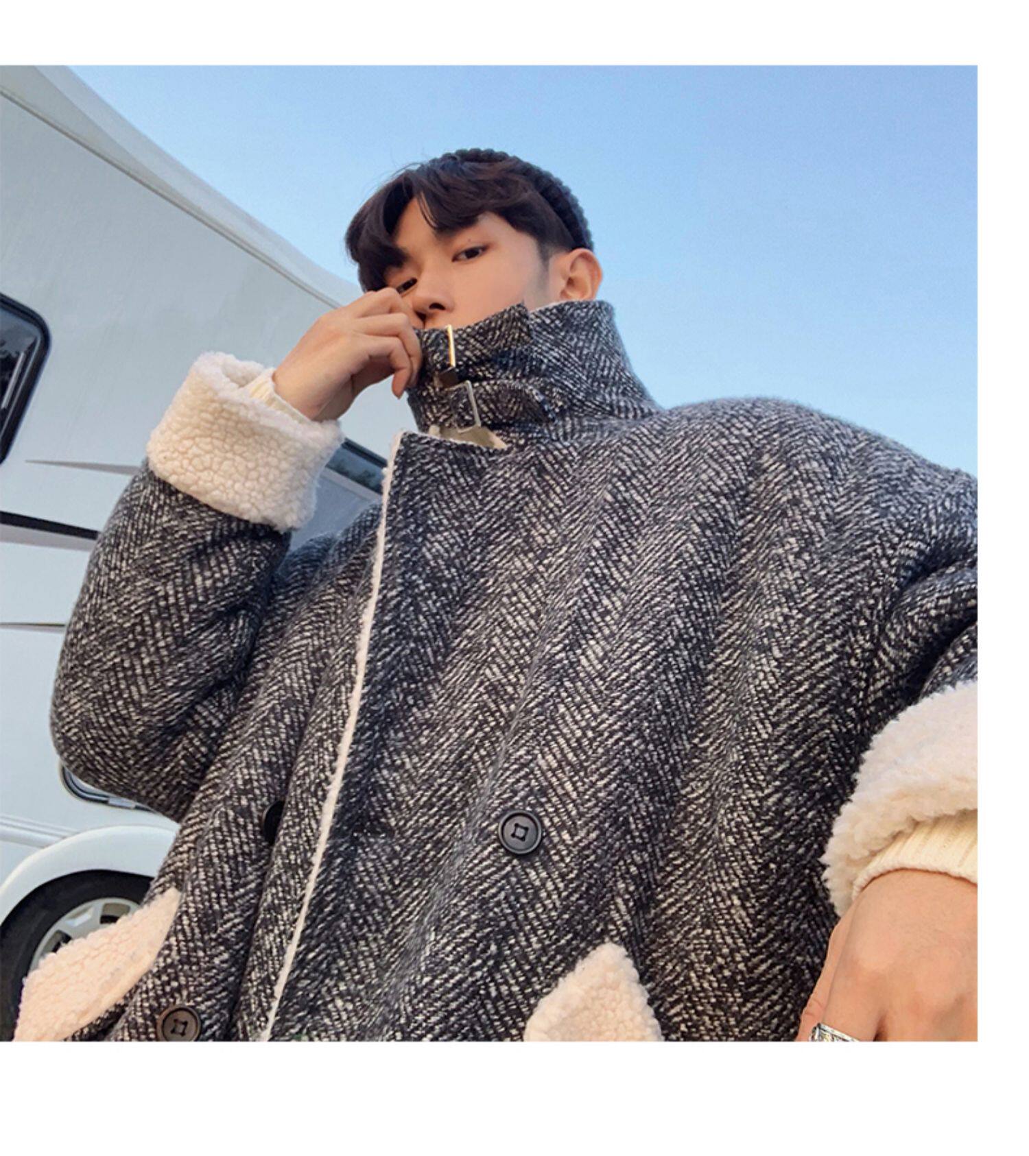 Длинное шерстяное пальто для мальчиков, утепленные джинсы с начесом, демисезонный трендовый ретро плащ, в корейском стиле
