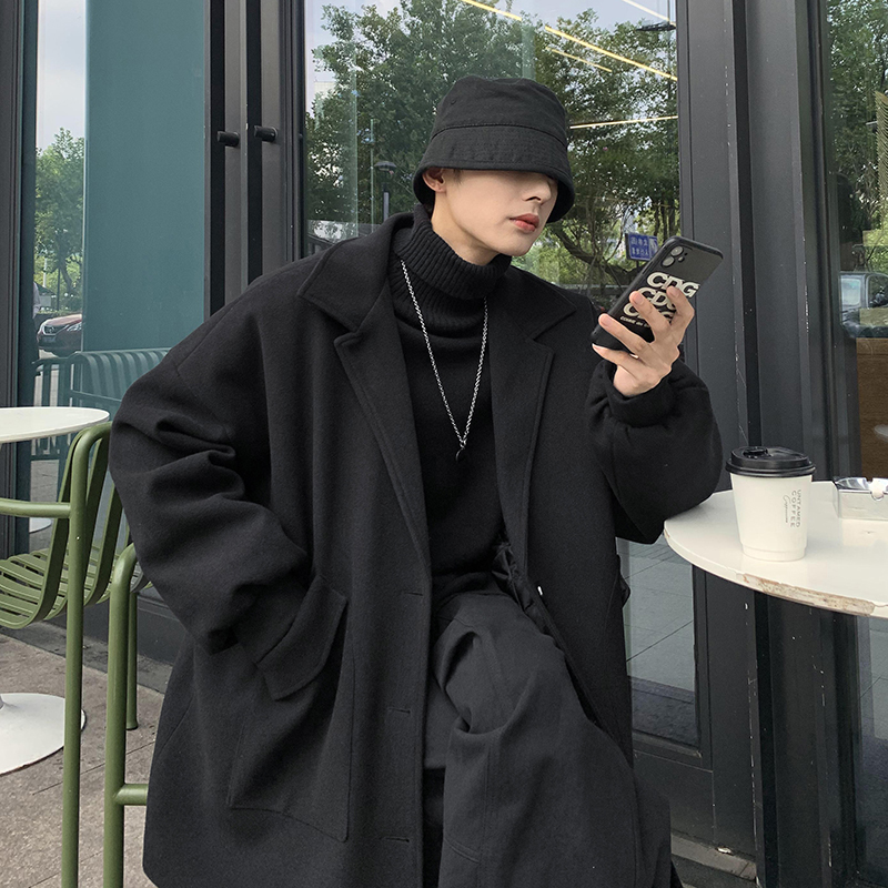 Tide, демисезонное трендовое шерстяное пальто для отдыха, куртка, в корейском стиле, оверсайз