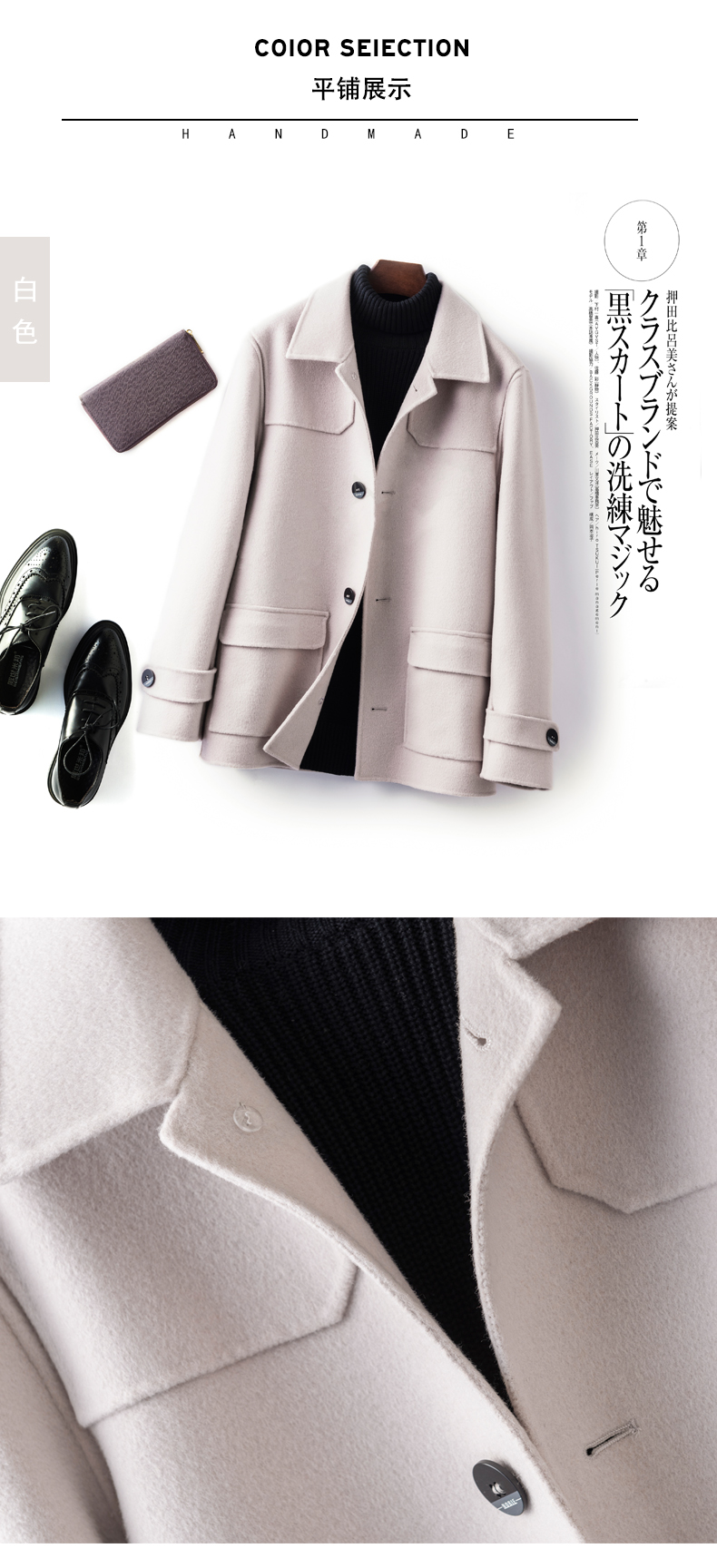 Шерстяное мужское демисезонное шерстяное пальто для отдыха, двусторонная кашемировая короткая куртка