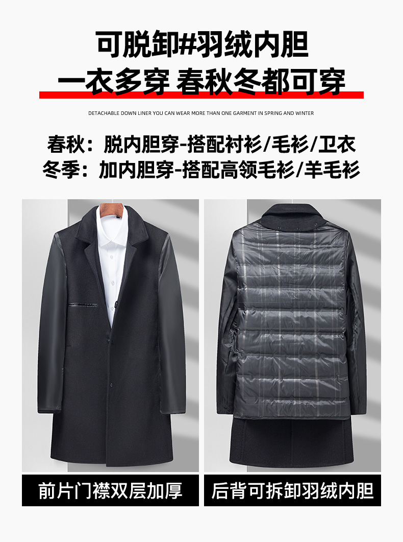 Съёмный вкладыш с пухом, зимнее шерстяное двусторонное шерстяное пальто, 2023