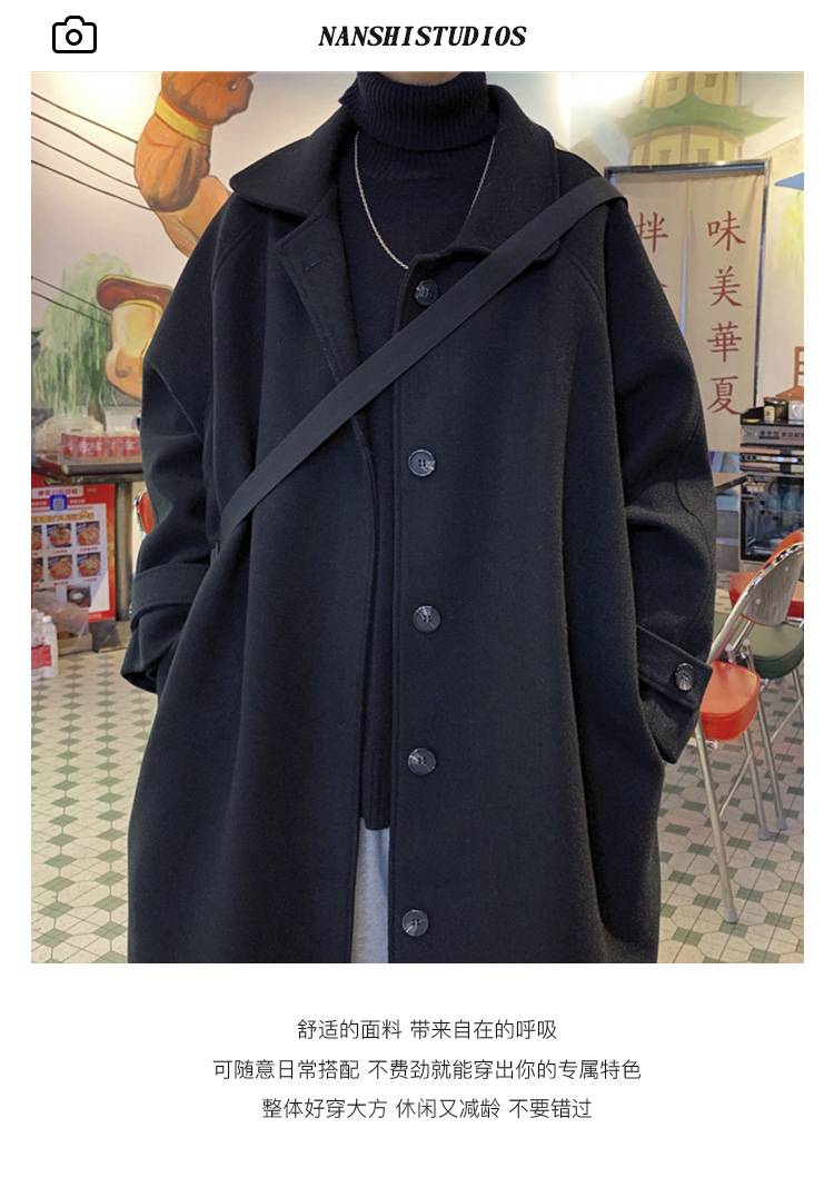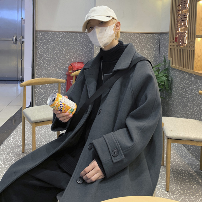 Tide, длинное зимнее шерстяное пальто для мальчиков, куртка, оверсайз, увеличенная толщина