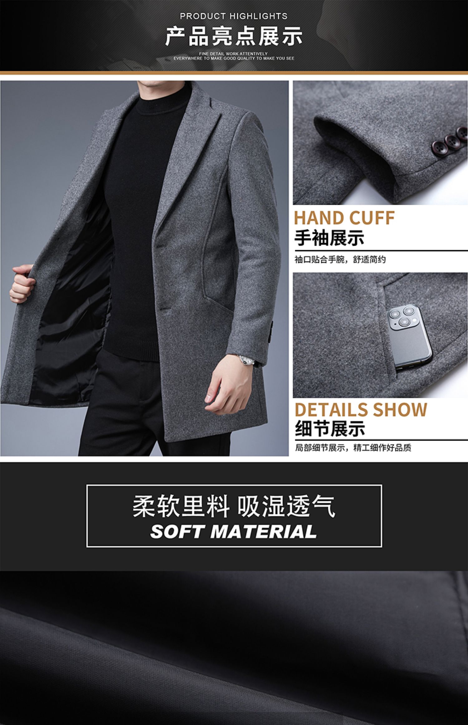 Длинная приталенная демисезонная куртка, кашемировое шерстяное пальто, увеличенная толщина