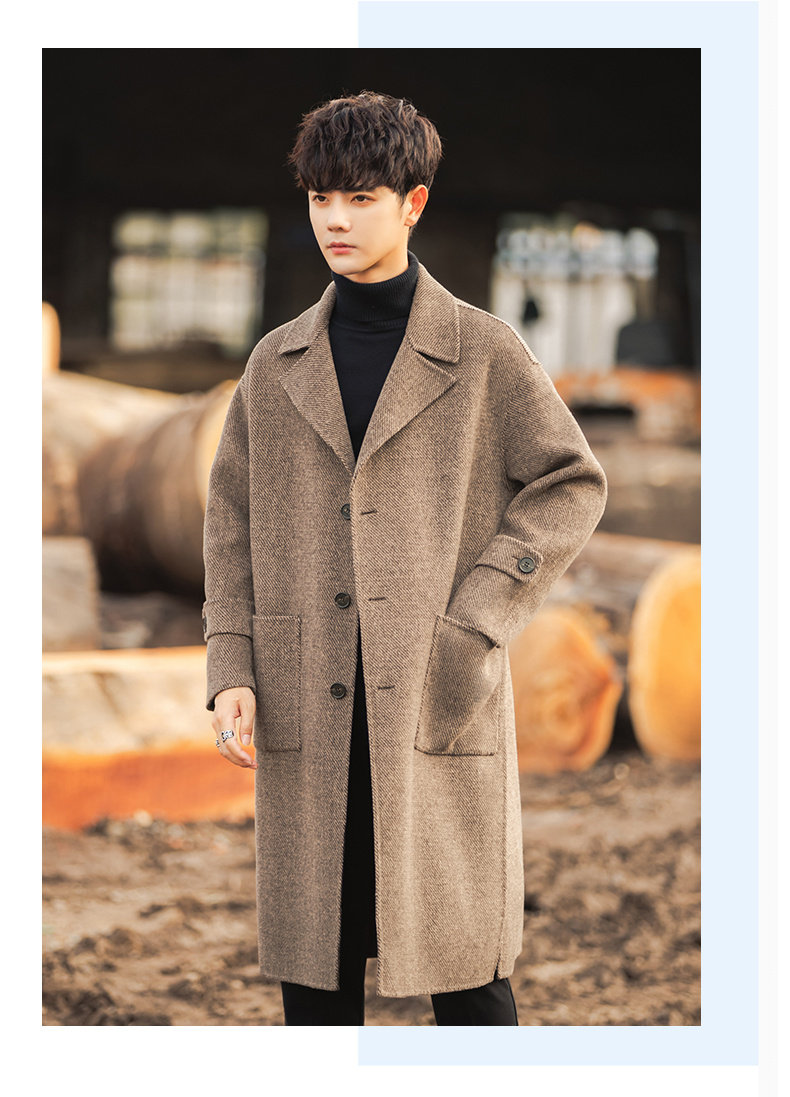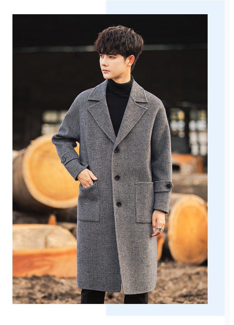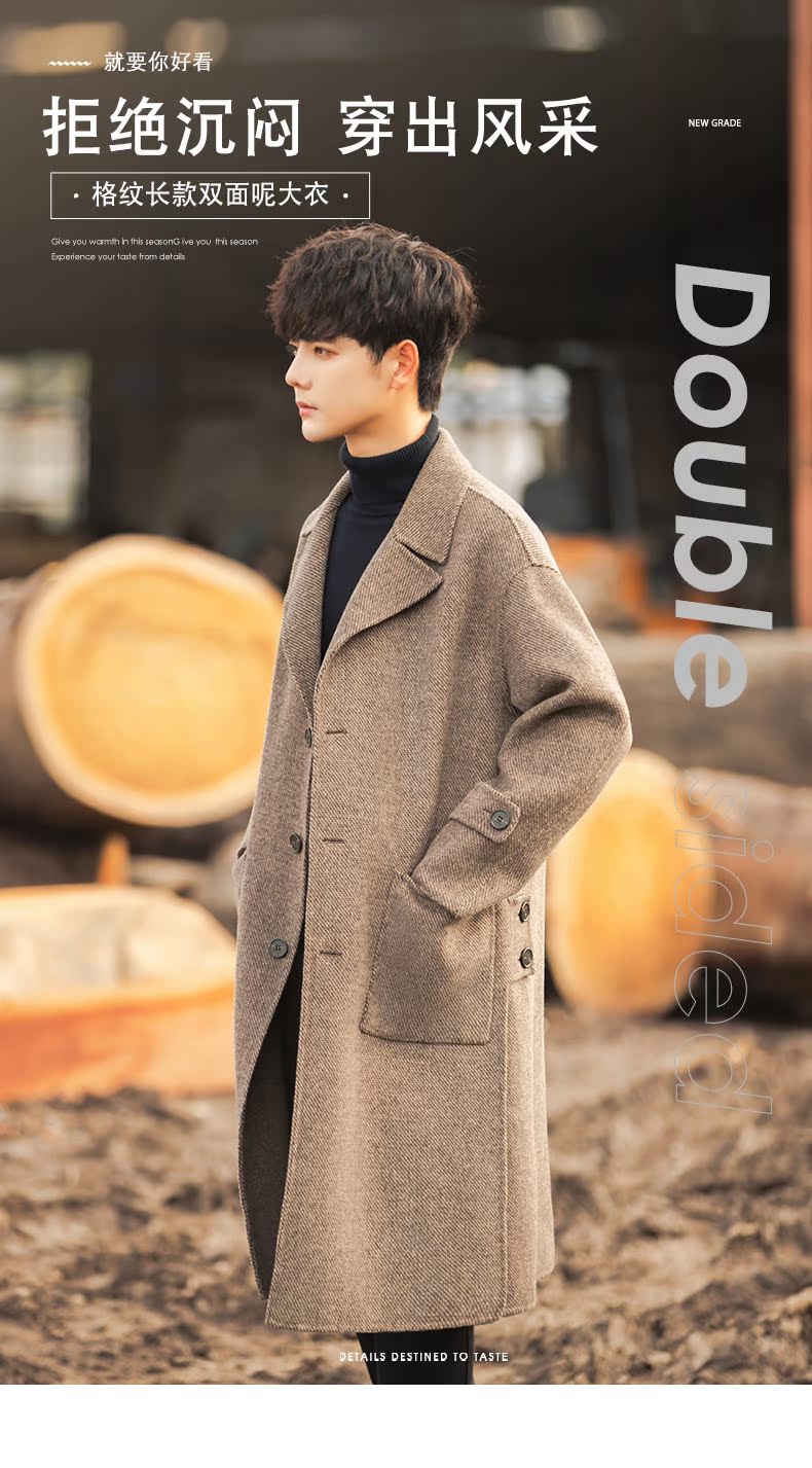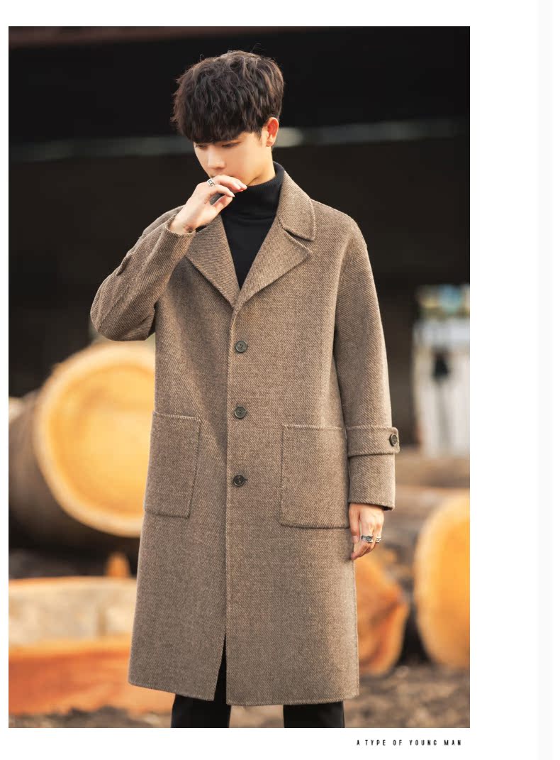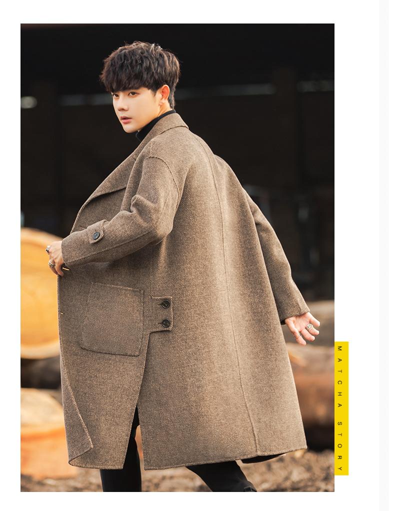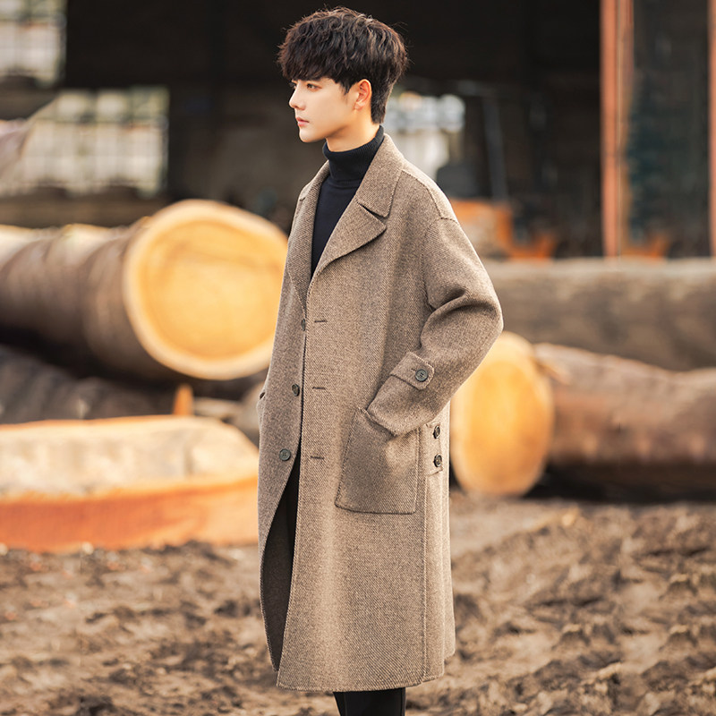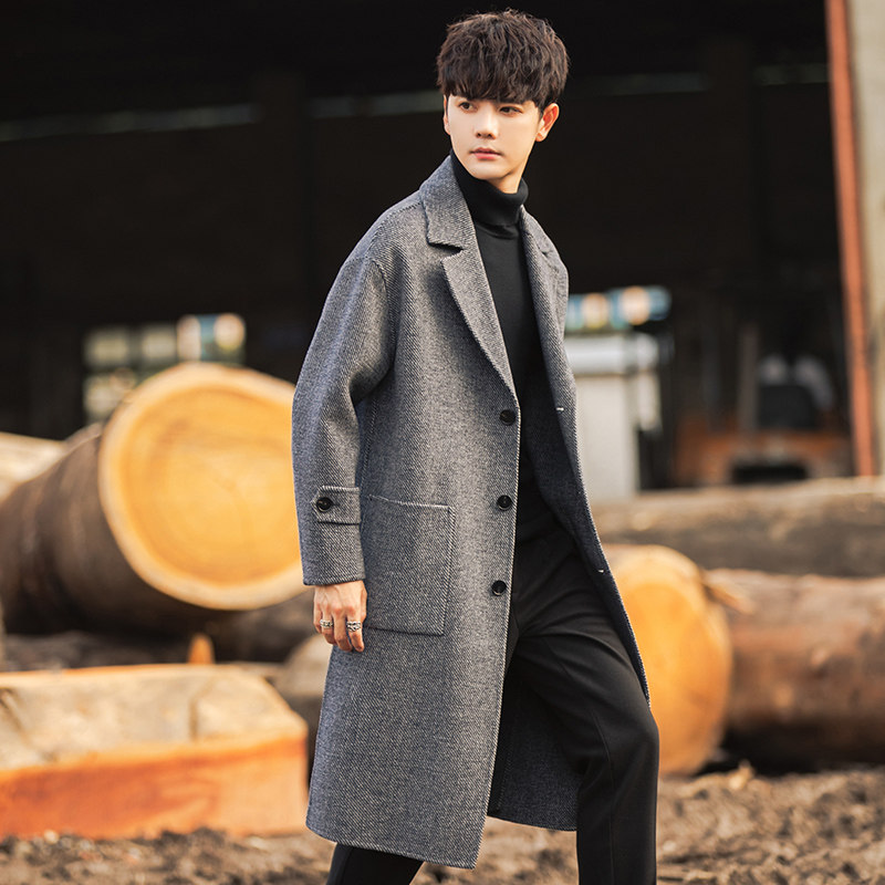 Трендовая куртка, демисезонное двусторонное шерстяное пальто, длинный плащ, в корейском стиле, оверсайз, средней длины