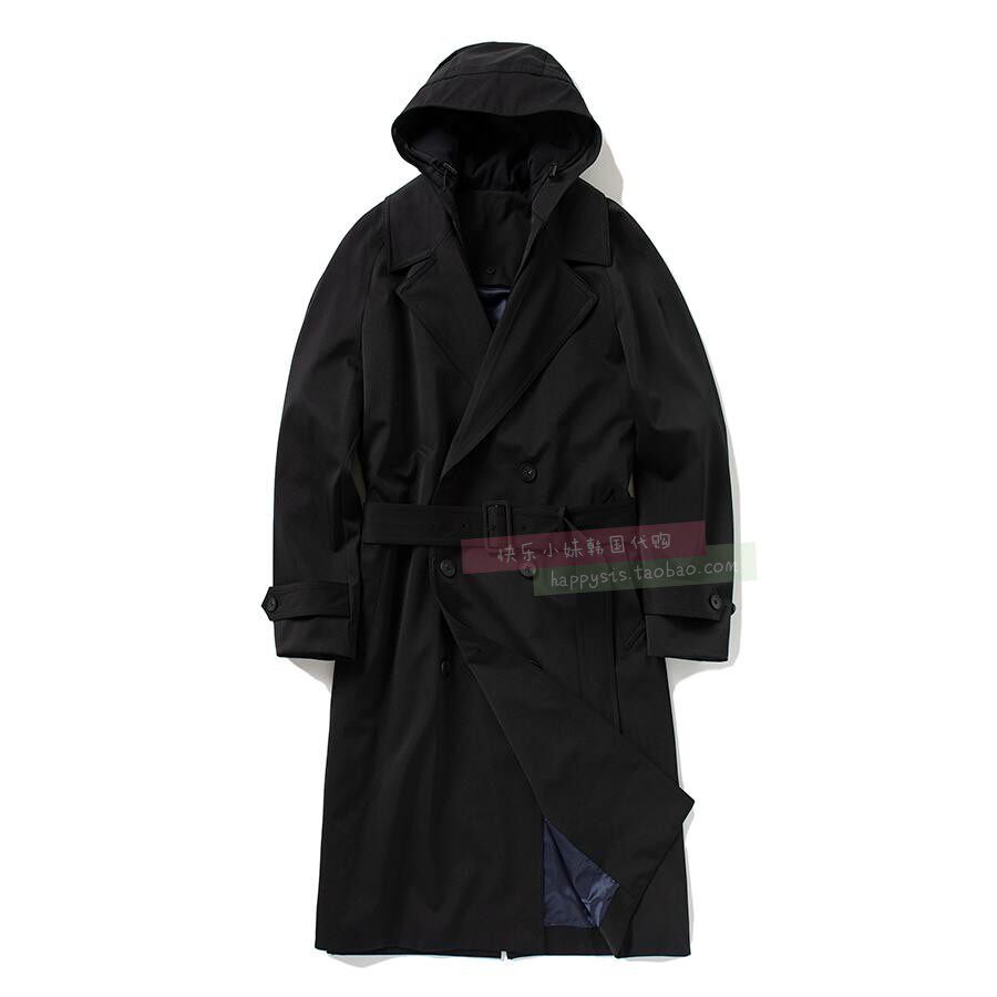 Демисезонная пряжка с капюшоном, ремень, черный плащ