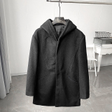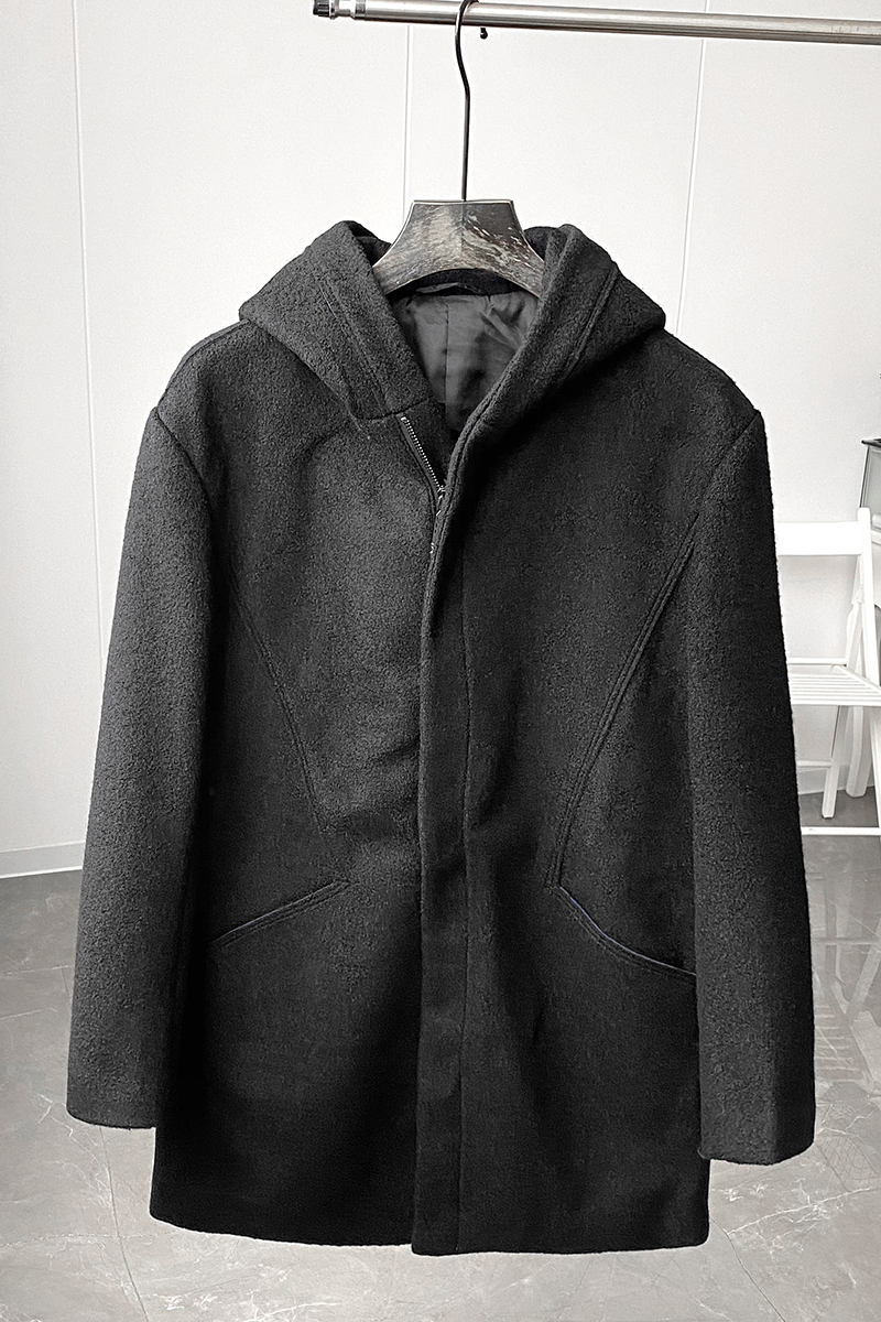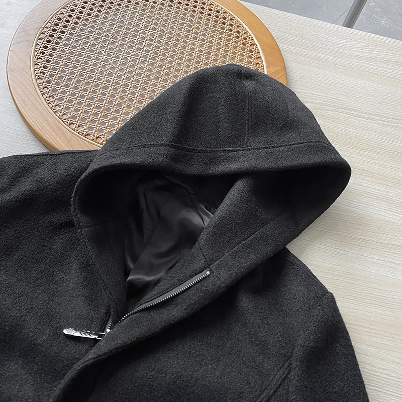Шерстяная демисезонная длинная толстовка с капюшоном, шерстяное пальто, средней длины