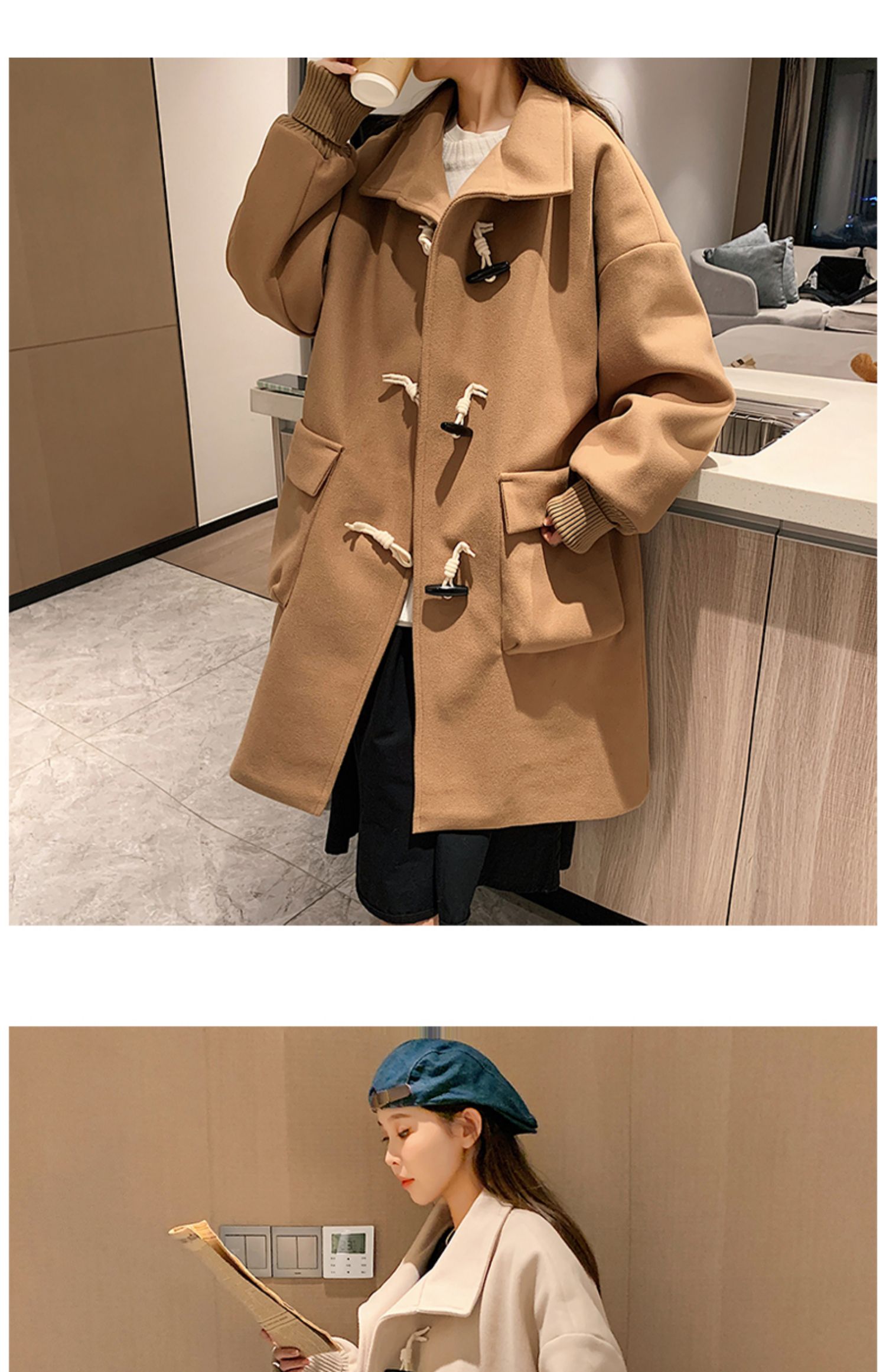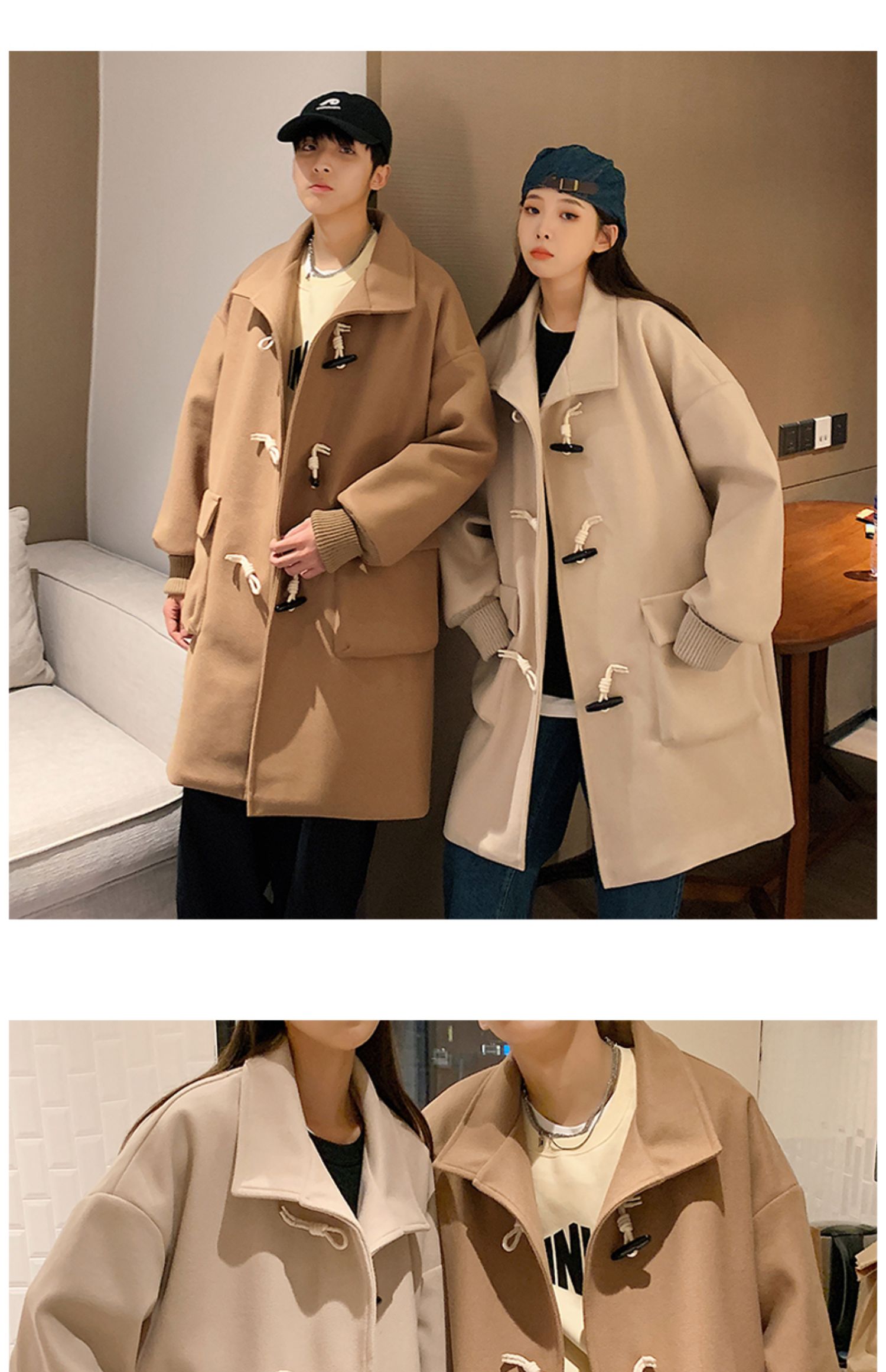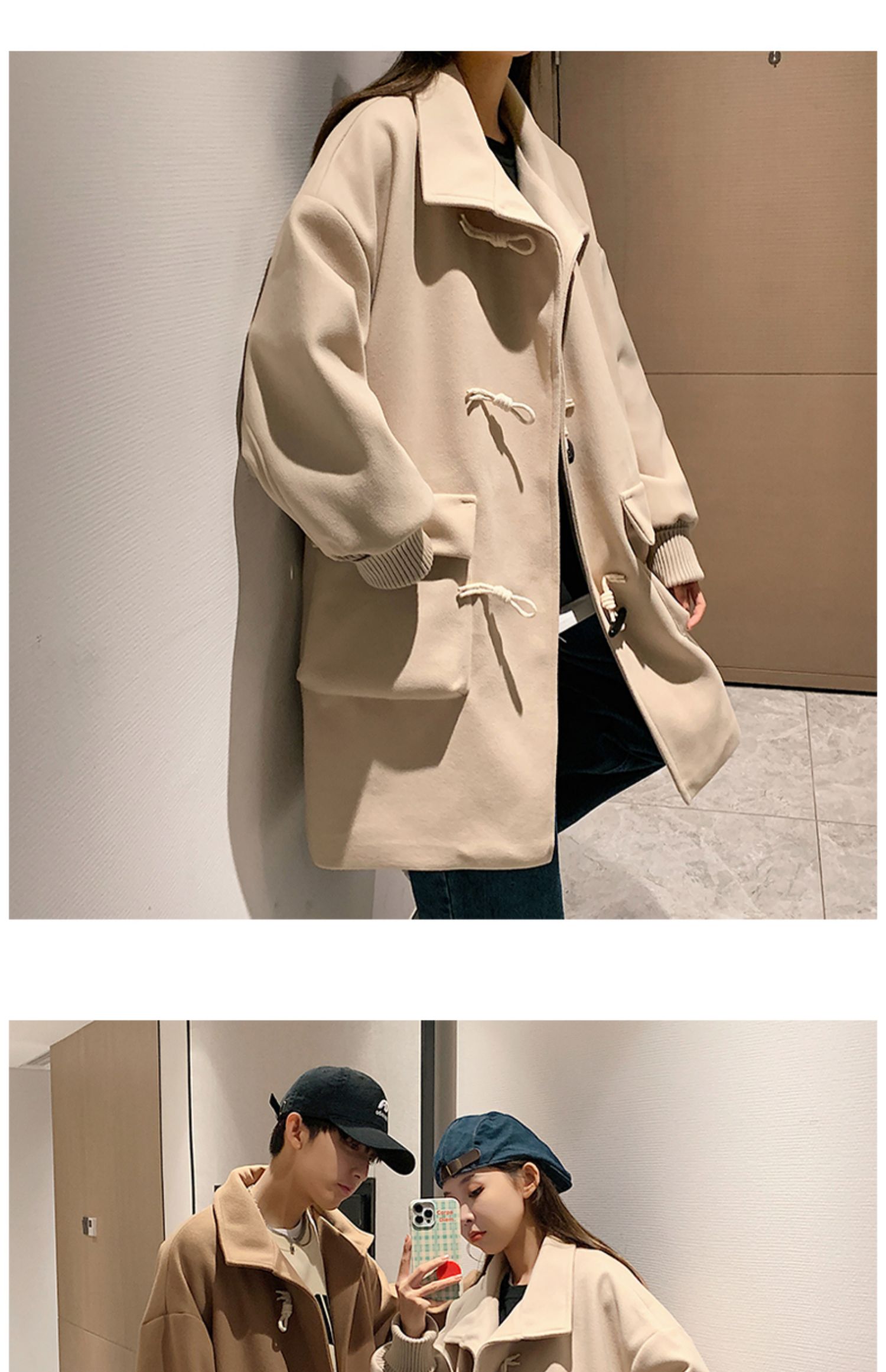 Демисезонное шерстяное пальто, длинная куртка для влюбленных, коллекция 2023, увеличенная толщина, средней длины