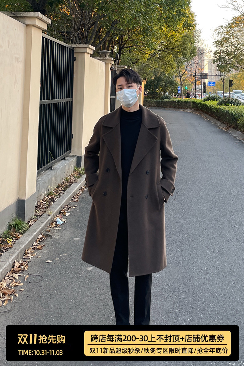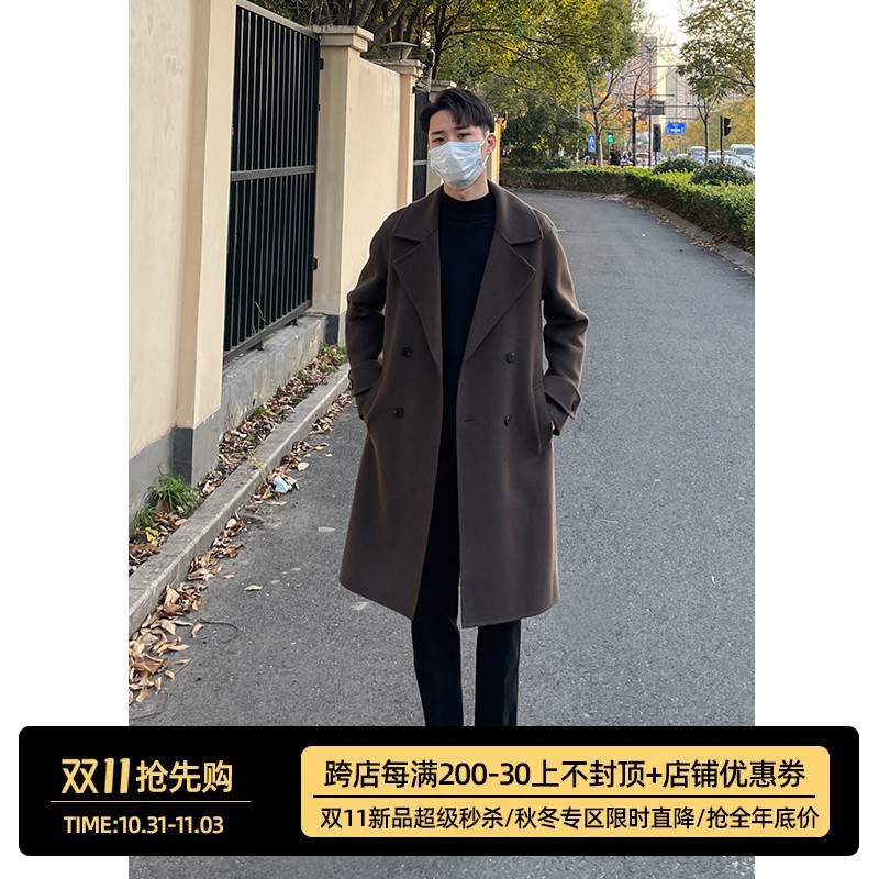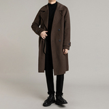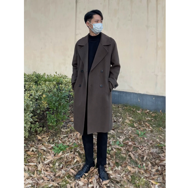 Демисезонное шерстяное пальто, длинная кашемировая двусторонная куртка, увеличенная толщина, средней длины