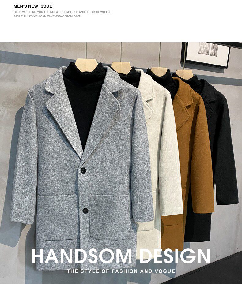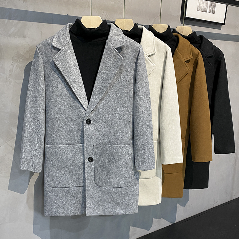 Демисезонное трендовое шерстяное пальто, длинная куртка для отдыха, в корейском стиле, оверсайз
