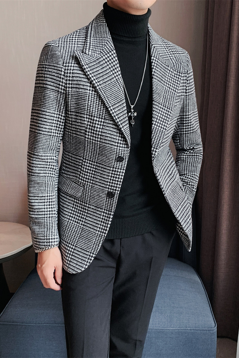 Зимний шерстяной костюм, трендовая модная куртка, увеличенная толщина, облегающий крой, в корейском стиле