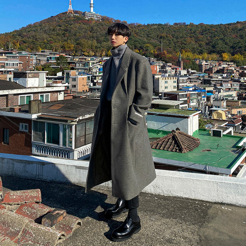 Длинное демисезонное зимнее трендовое шерстяное пальто, в корейском стиле, оверсайз, средней длины, премиум класс
