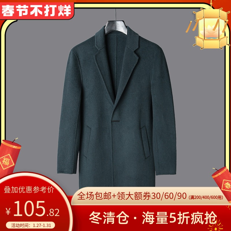 Clear Warehouse#9 Charm Men's KJN8W0002 Один пряжка с двумя нишами шерстяным пальто Внешняя куртка