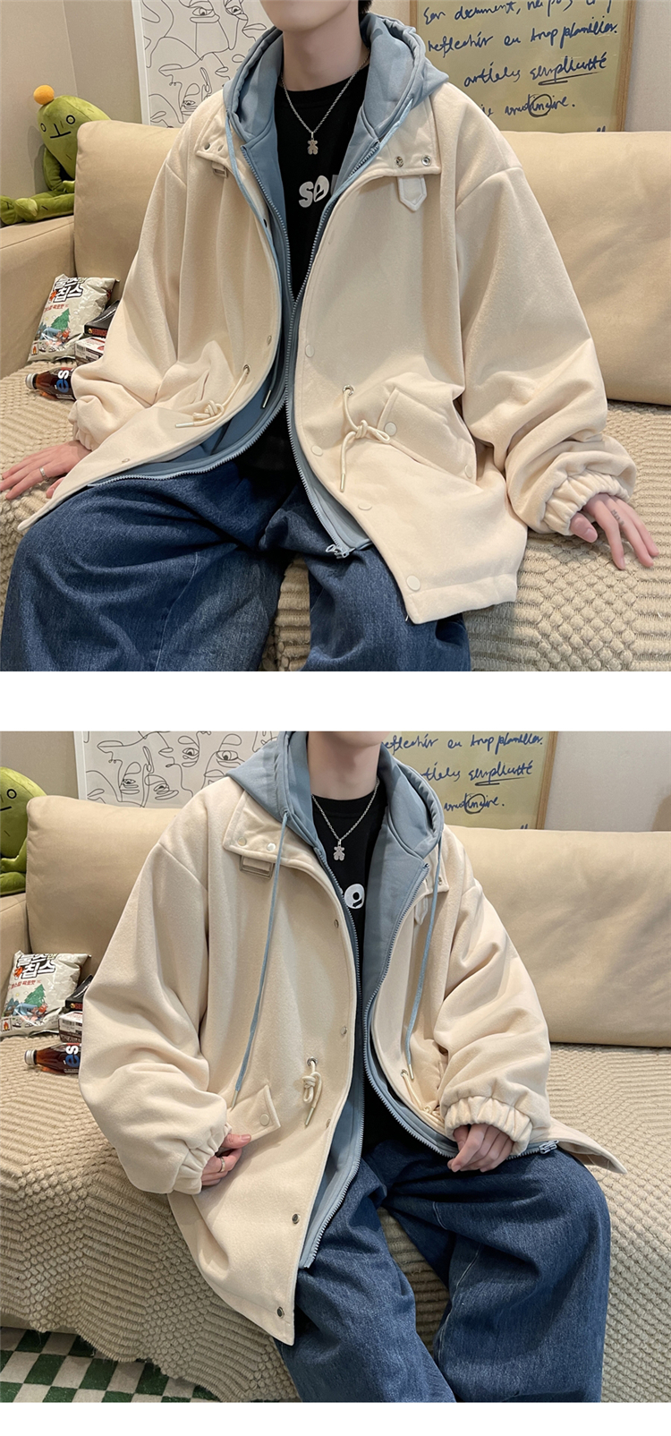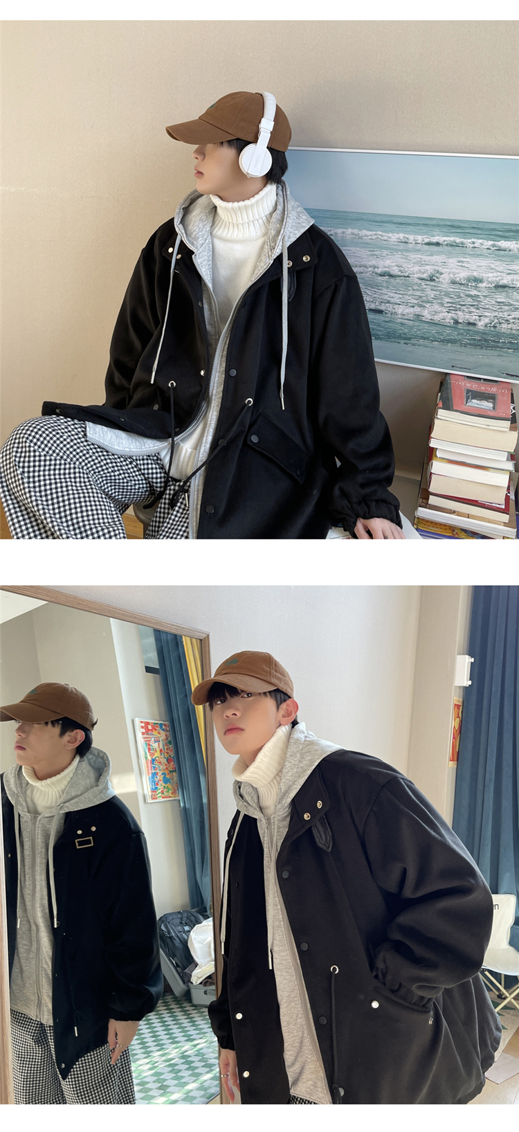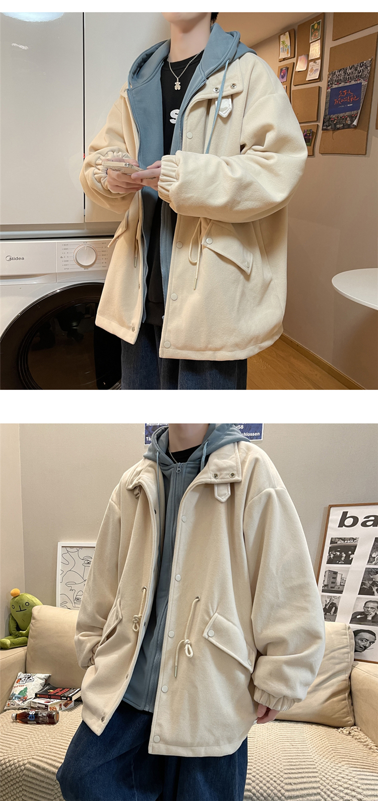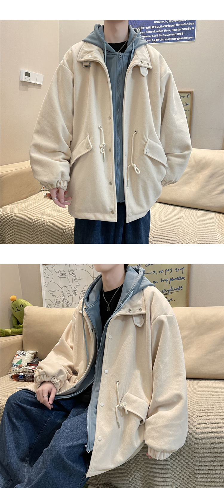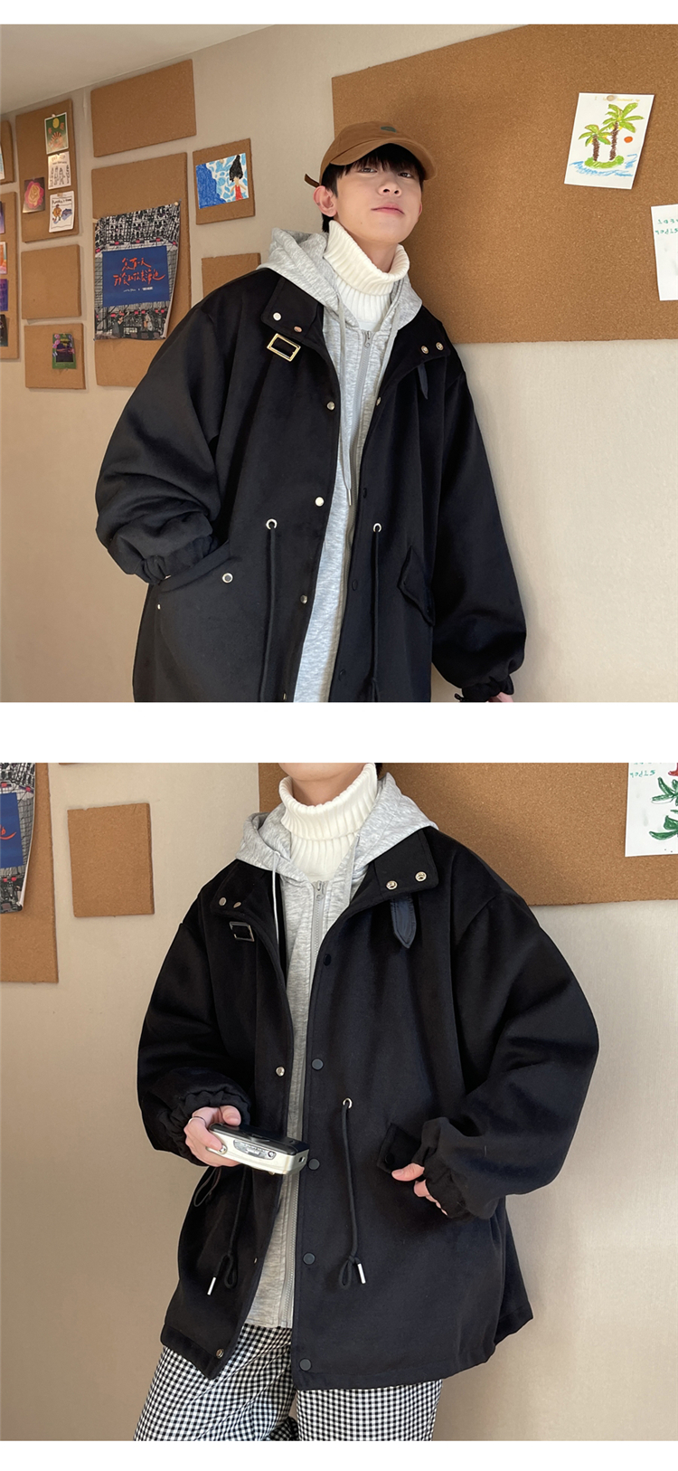 Демисезонное брендовое шерстяное пальто, толстовка с капюшоном, трендовая куртка, комплект