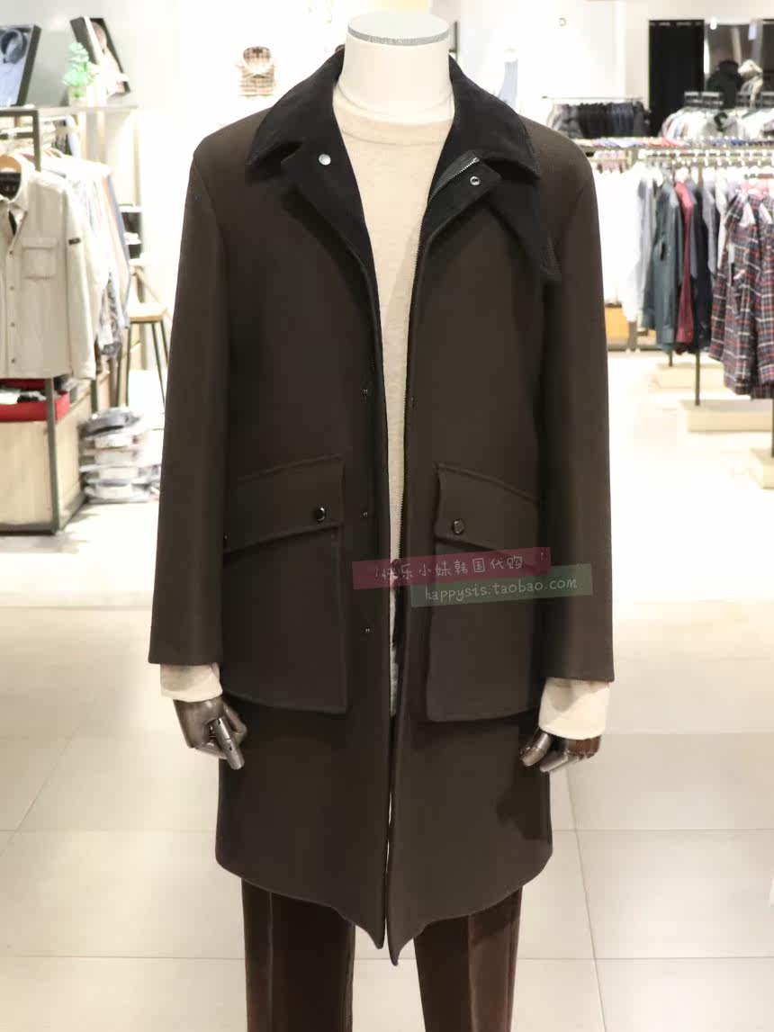Оригинальные 4300 Sieg Южная Корея, покупая зимние мужские скользкие плечи с кашемиром, сшивающим досугом пальто хаки