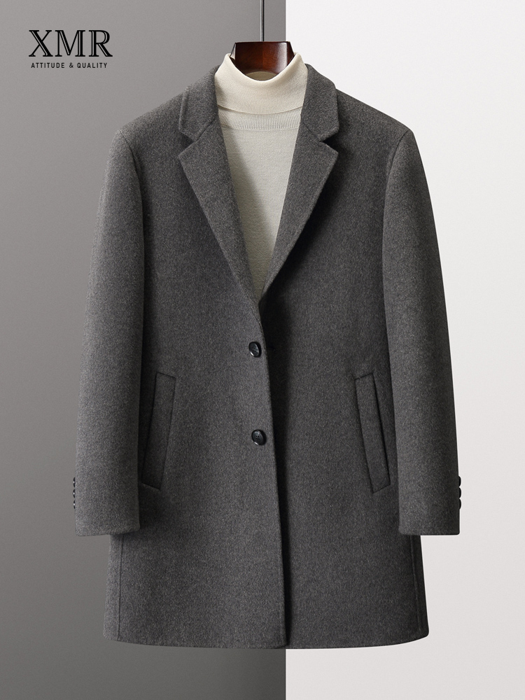 Элитный двусторонний костюм для отдыха, шерстяное демисезонное длинное пальто