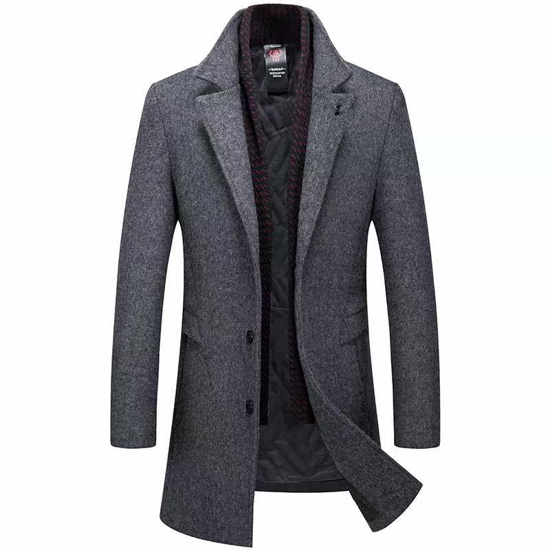 Зимние новое мужское деловое шерстяное пальто