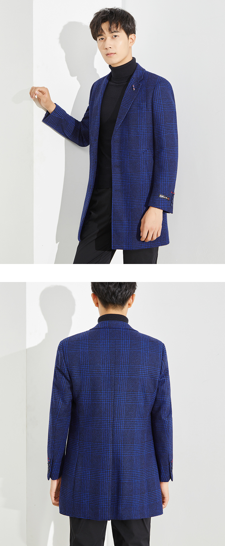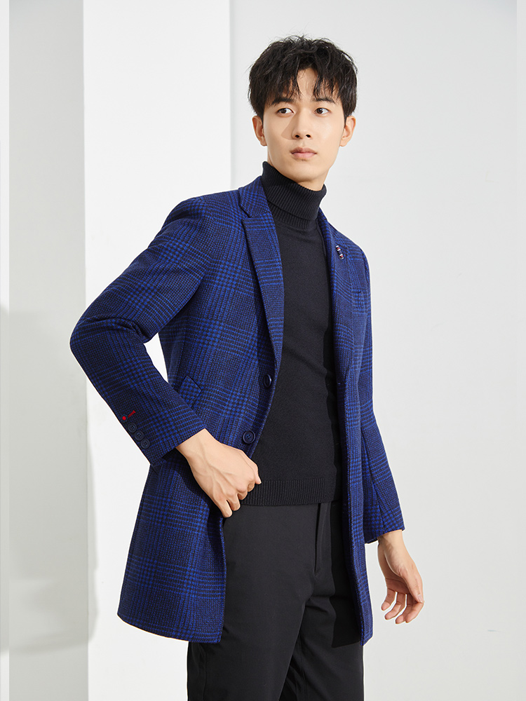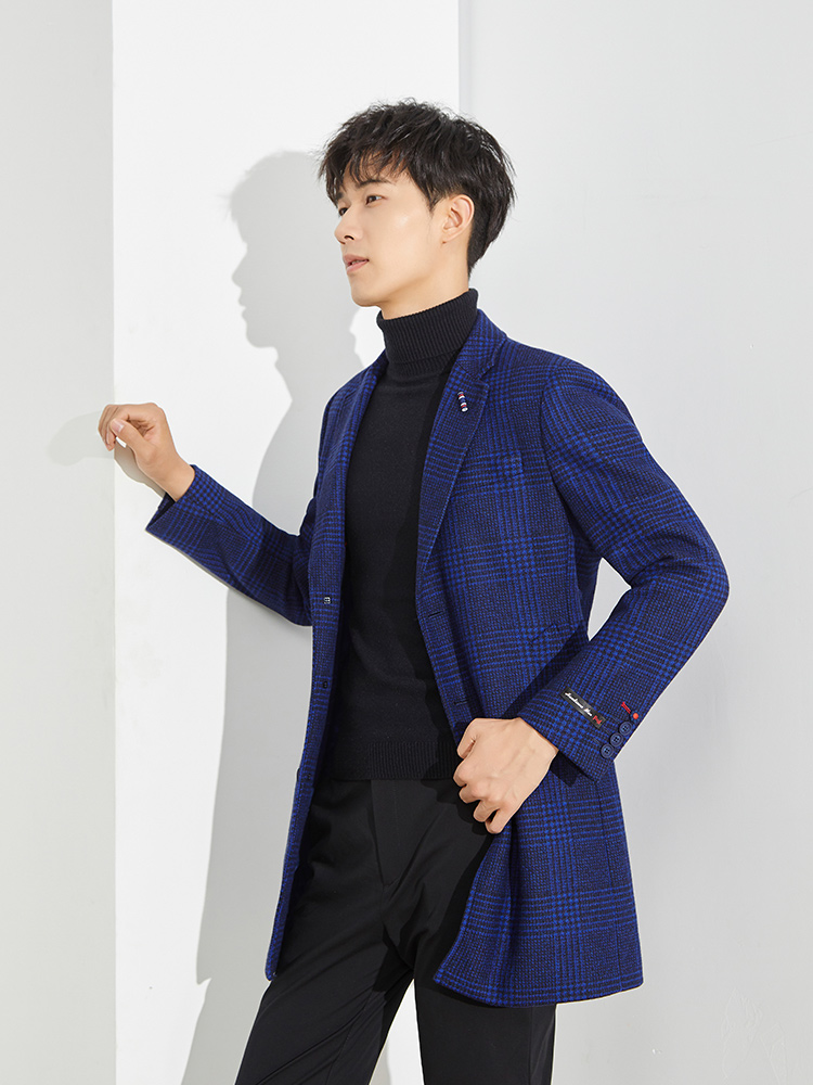 Модное шерстяное длинное шерстяное пальто, яркий броский стиль, изысканный стиль, средней длины