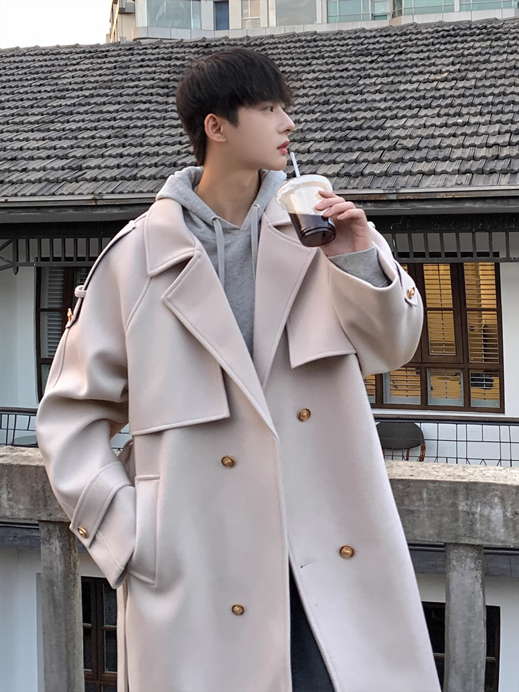 Плащ, весеннее трендовое брендовое длинное черное пальто, в британском стиле, в корейском стиле, средней длины