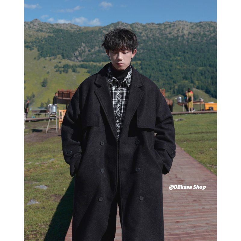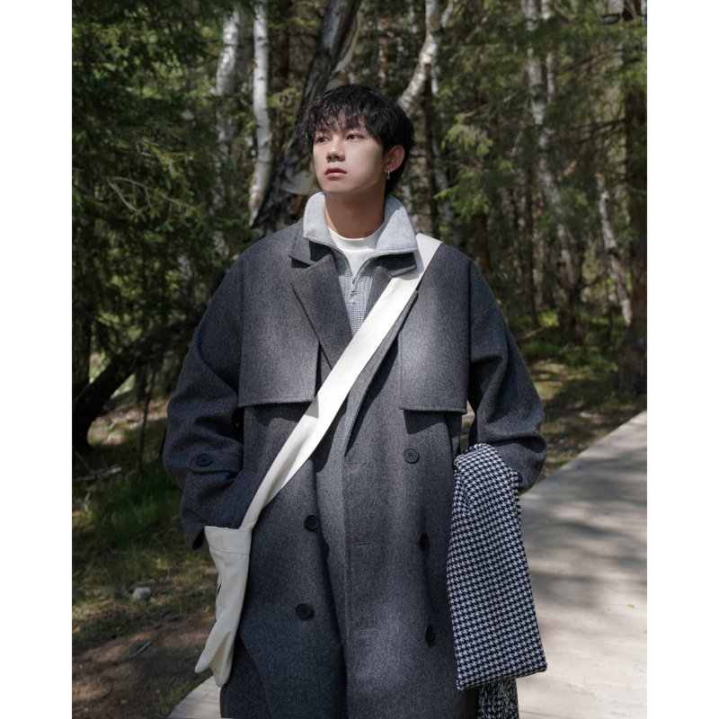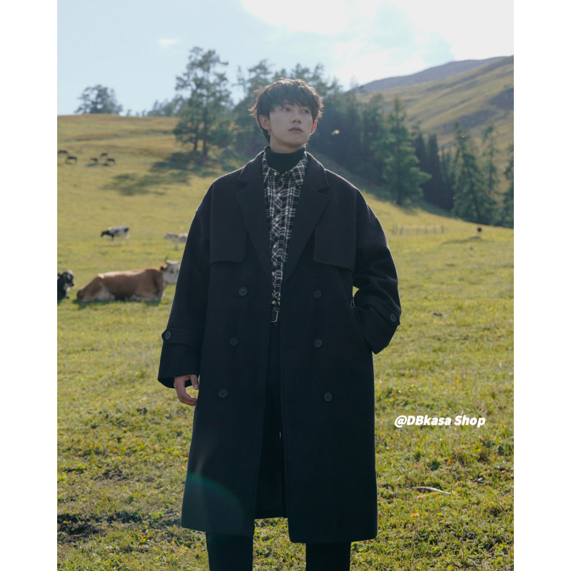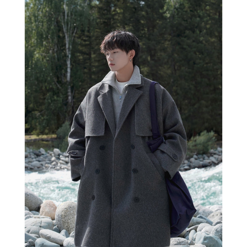 Длинное шерстяное пальто для мальчиков, демисезонная куртка, плащ, средней длины, изысканный стиль