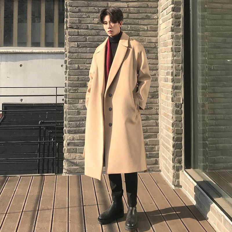 Длинное демисезонное утепленное шерстяное пальто для мальчиков, плащ, в корейском стиле