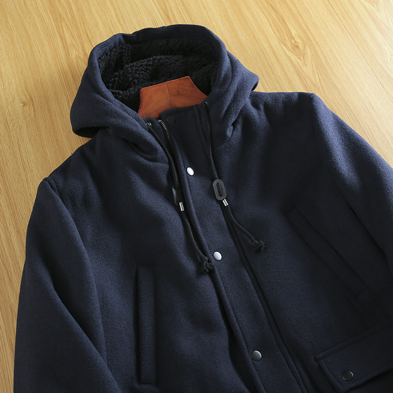 Утепленная бархатная демисезонная шерстяная утепленный лонгслив, шерстяное пальто с капюшоном, европейский стиль