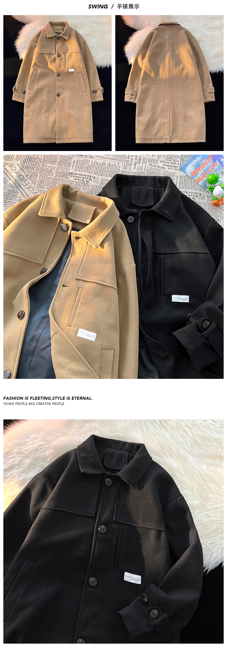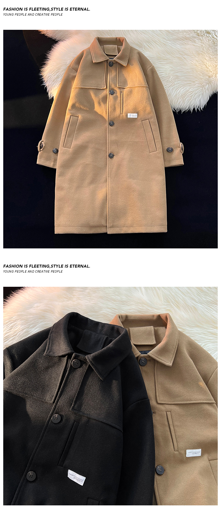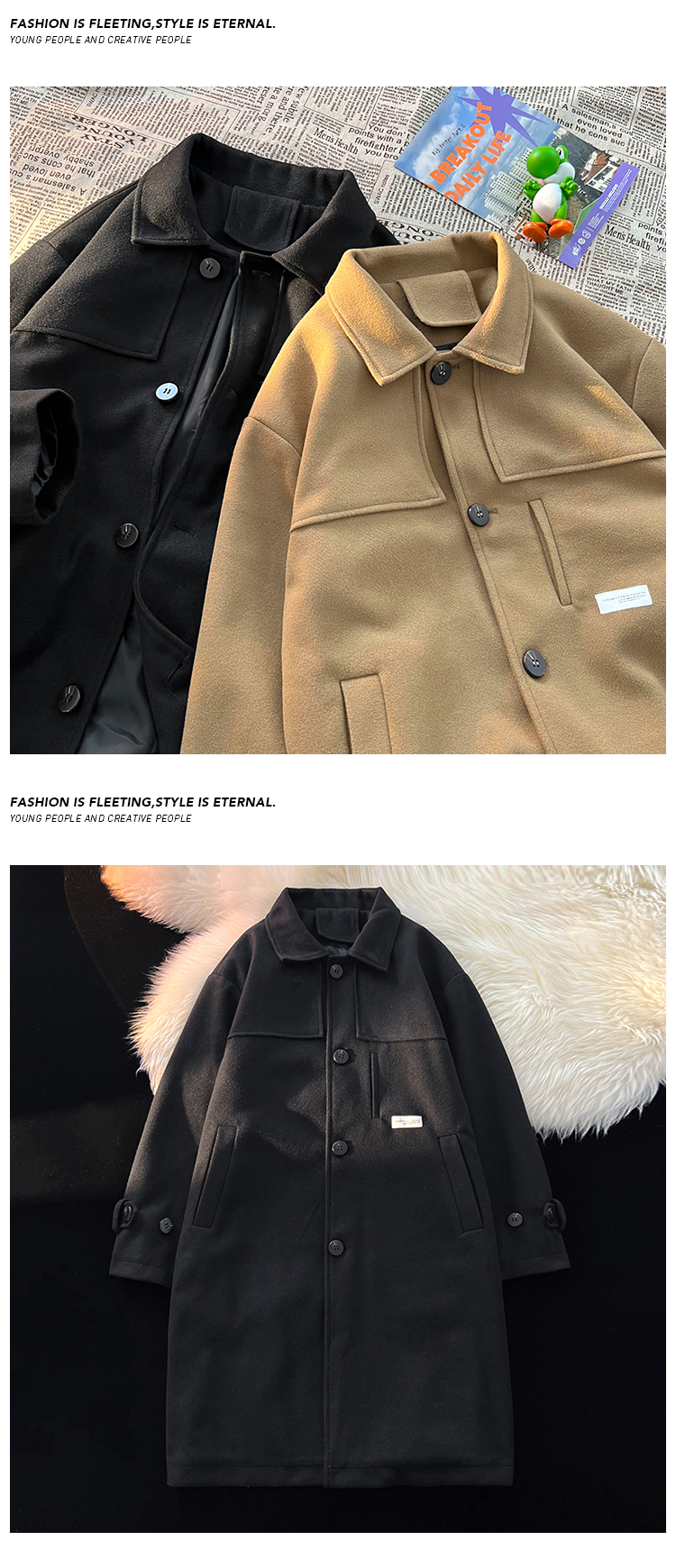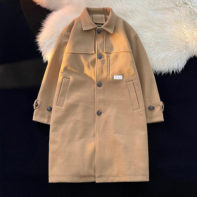 Демисезонное шерстяное пальто, мужской японский длинный плащ, трендовая куртка, увеличенная толщина, средней длины, в корейском стиле