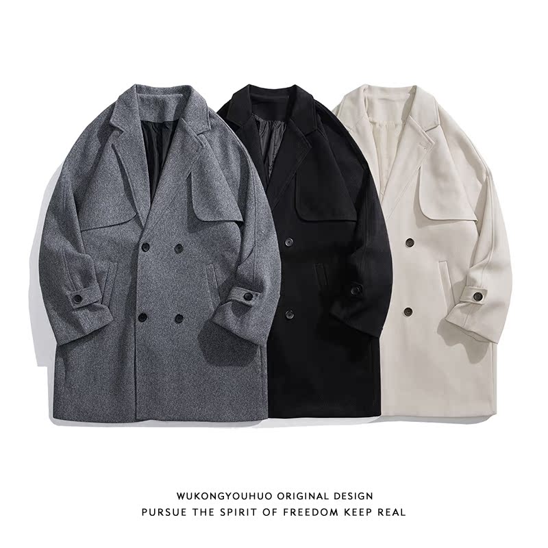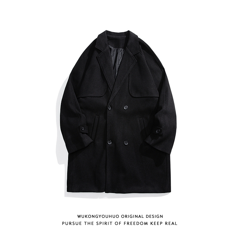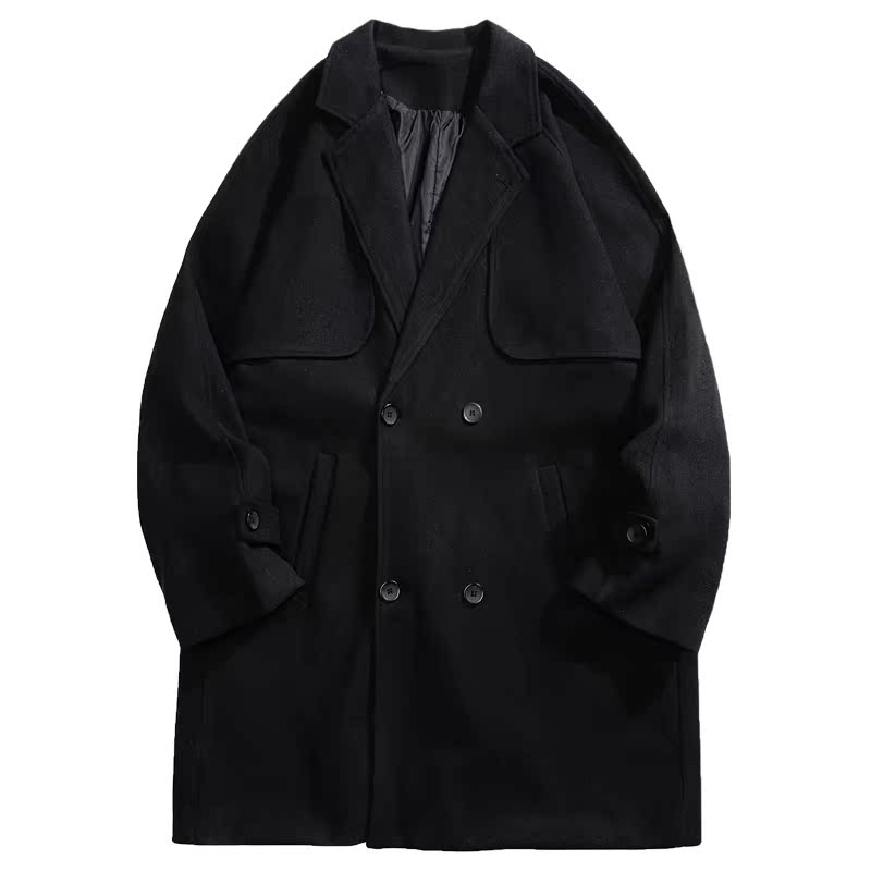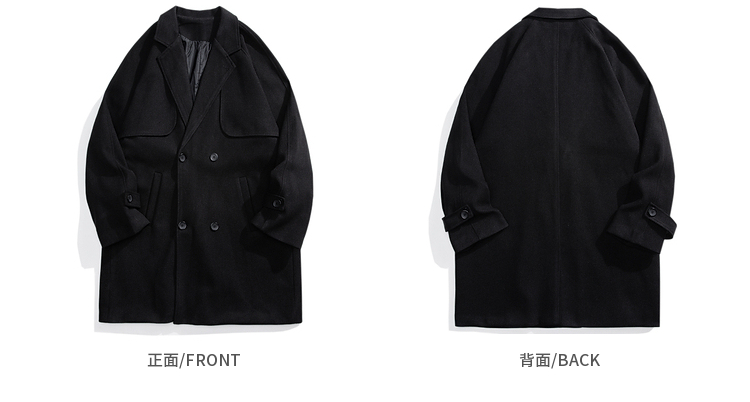 Черное цветное длинное ретро шерстяное пальто подходит для мужчин и женщин, куртка, средней длины, изысканный стиль