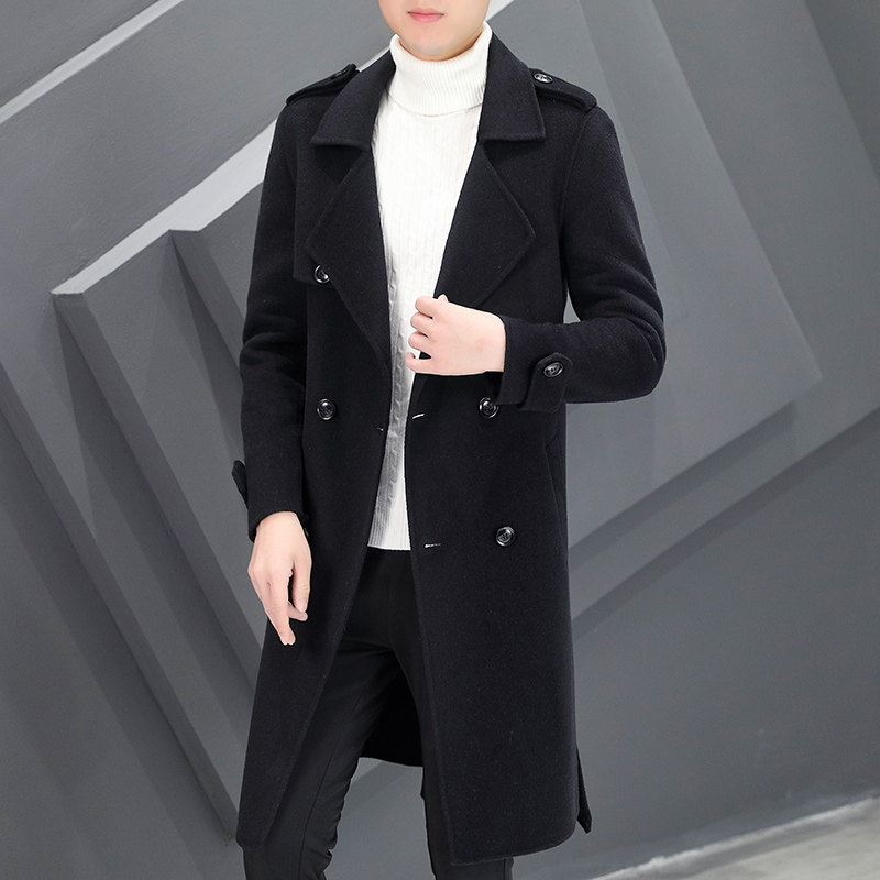 Демисезонное шерстяное пальто, демисезонная трендовая кашемировая шерстяная двусторонная куртка, в корейском стиле