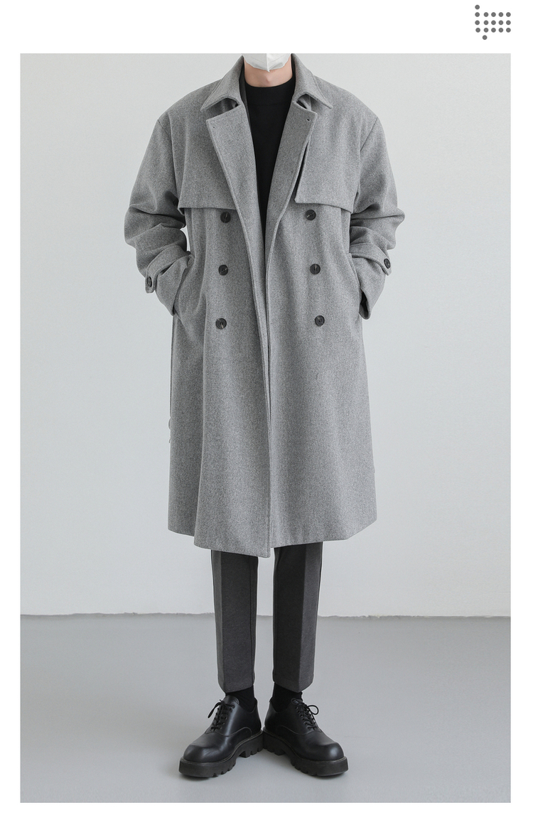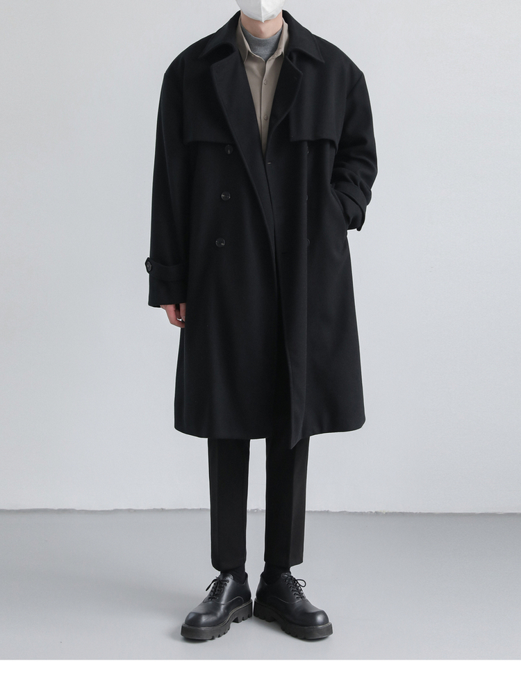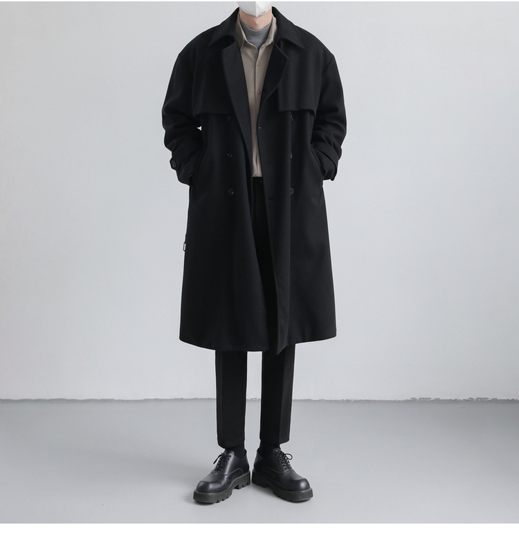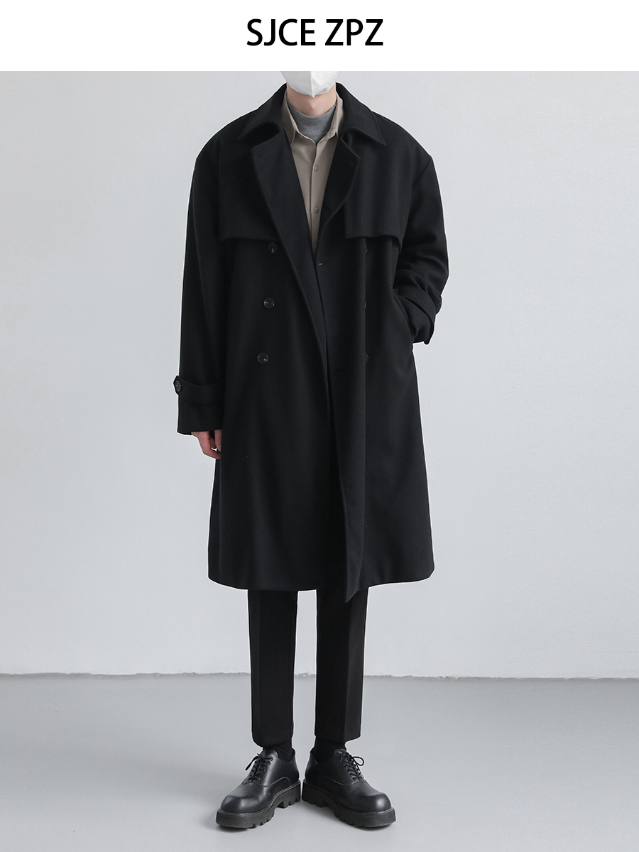 Зимнее мужское трендовое шерстяное пальто, плащ, в корейском стиле, оверсайз, увеличенная толщина, изысканный стиль