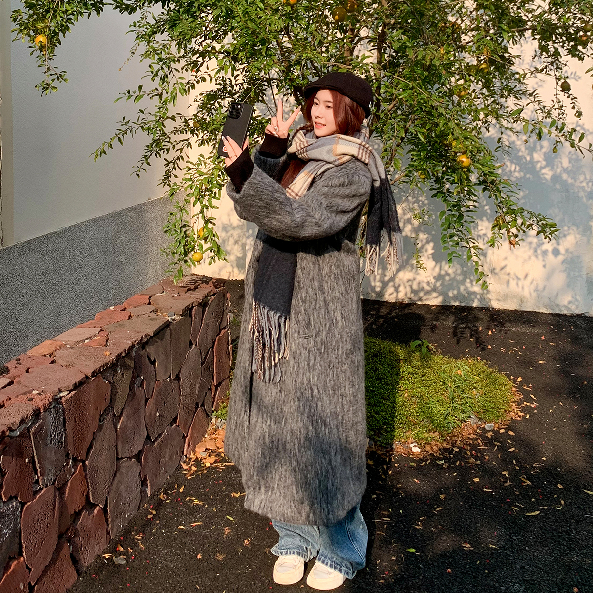 白口阳 Стеганое удерживающее тепло длинное шерстяное пальто для отдыха, средней длины, оверсайз