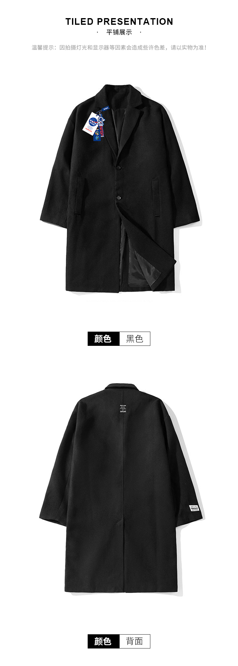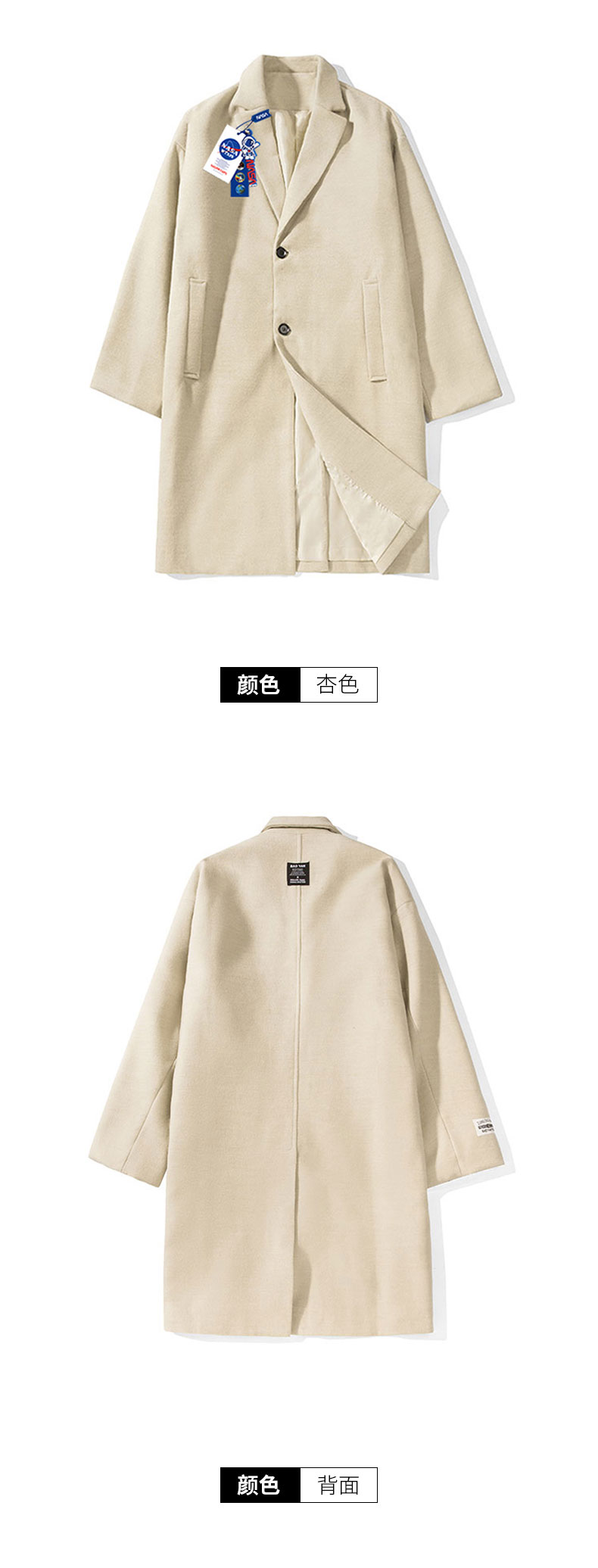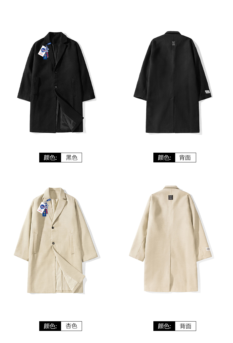 NASA WTAPS Демисезонное шерстяное пальто, плащ, в британском стиле
