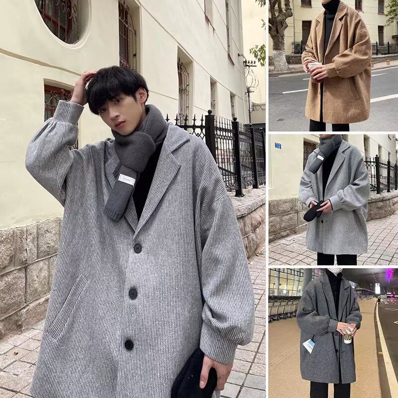 Вельветовая лампа, шерстяной демисезонный плащ, длинная куртка, пальто, в американском стиле, увеличенная толщина, средней длины