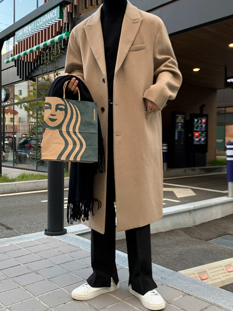 Мужская осенняя и зимняя средняя корейская и модная английская шерстяная шерсть с чрезмерным коленом