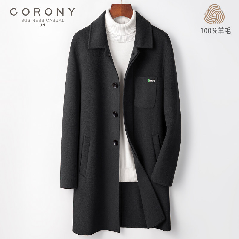 Шерстяное демисезонное осеннее шерстяное пальто, двусторонная куртка, плащ, средней длины, изысканный стиль