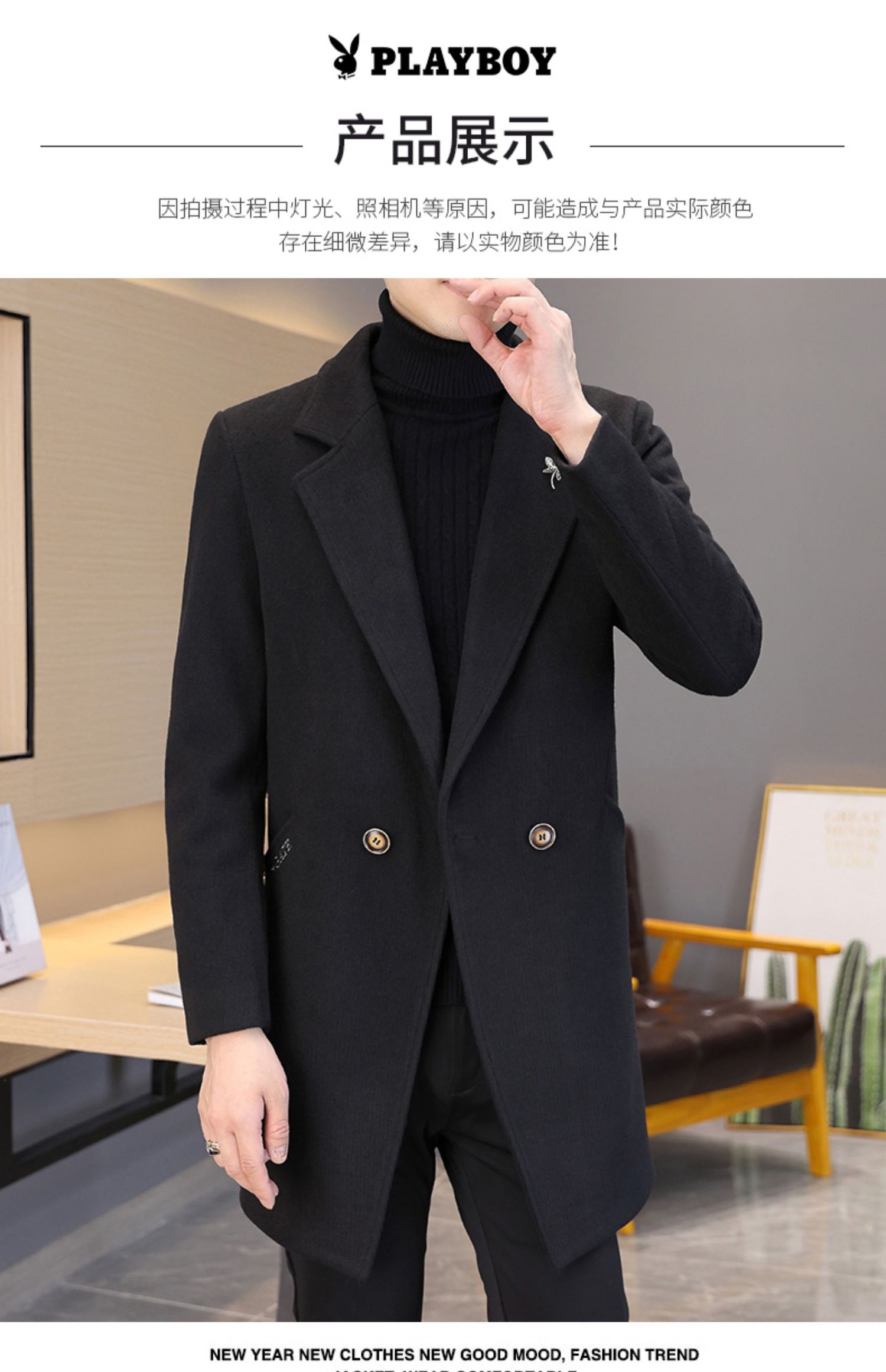 Playboy, шерстяное длинное зимнее шерстяное пальто для мальчиков, костюм для отдыха, в корейском стиле