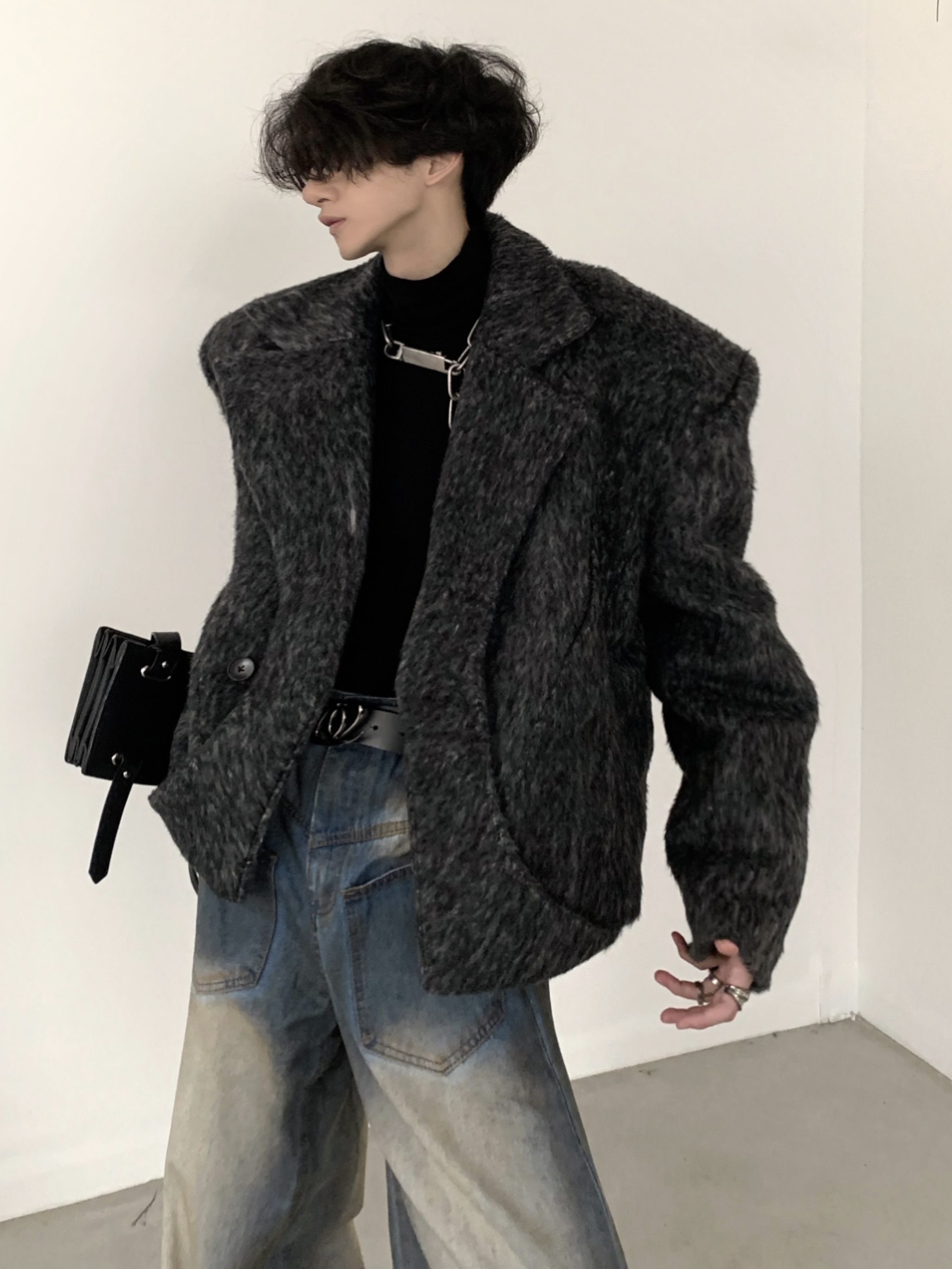 Шерстяное мужское демисезонное шерстяное пальто, уплотняющая прокладка, наплечники, костюм, пуховик, изысканный стиль