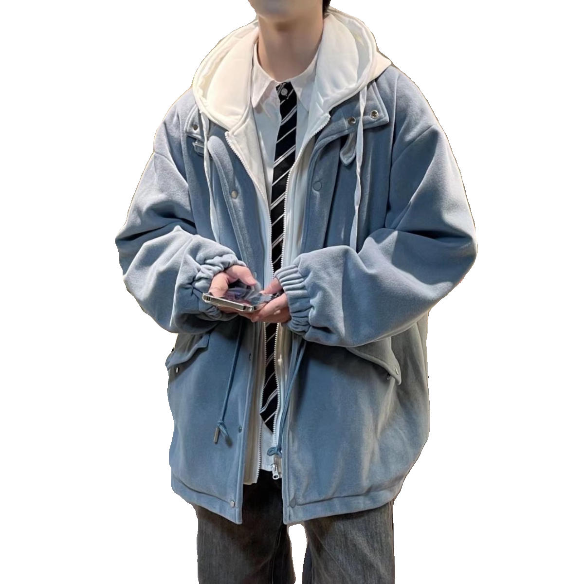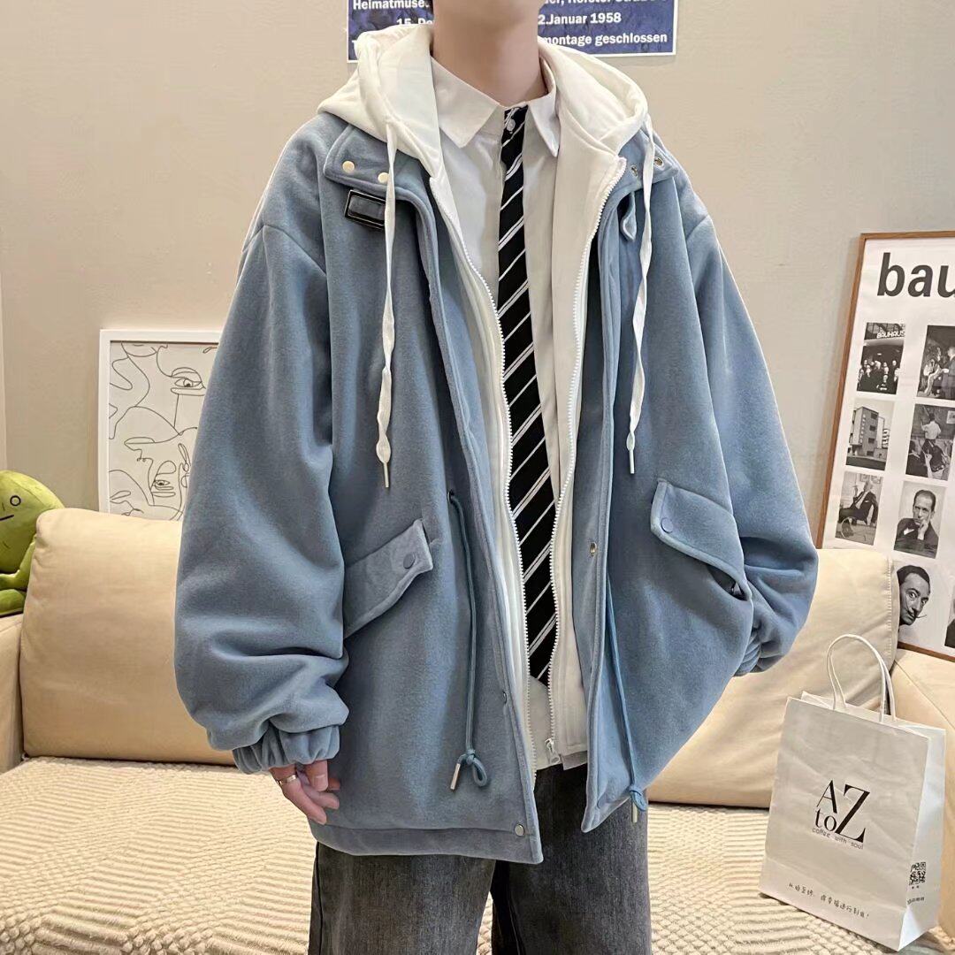 Демисезонное шерстяное пальто, комплект с капюшоном, длинная куртка, мужской стиль, оверсайз