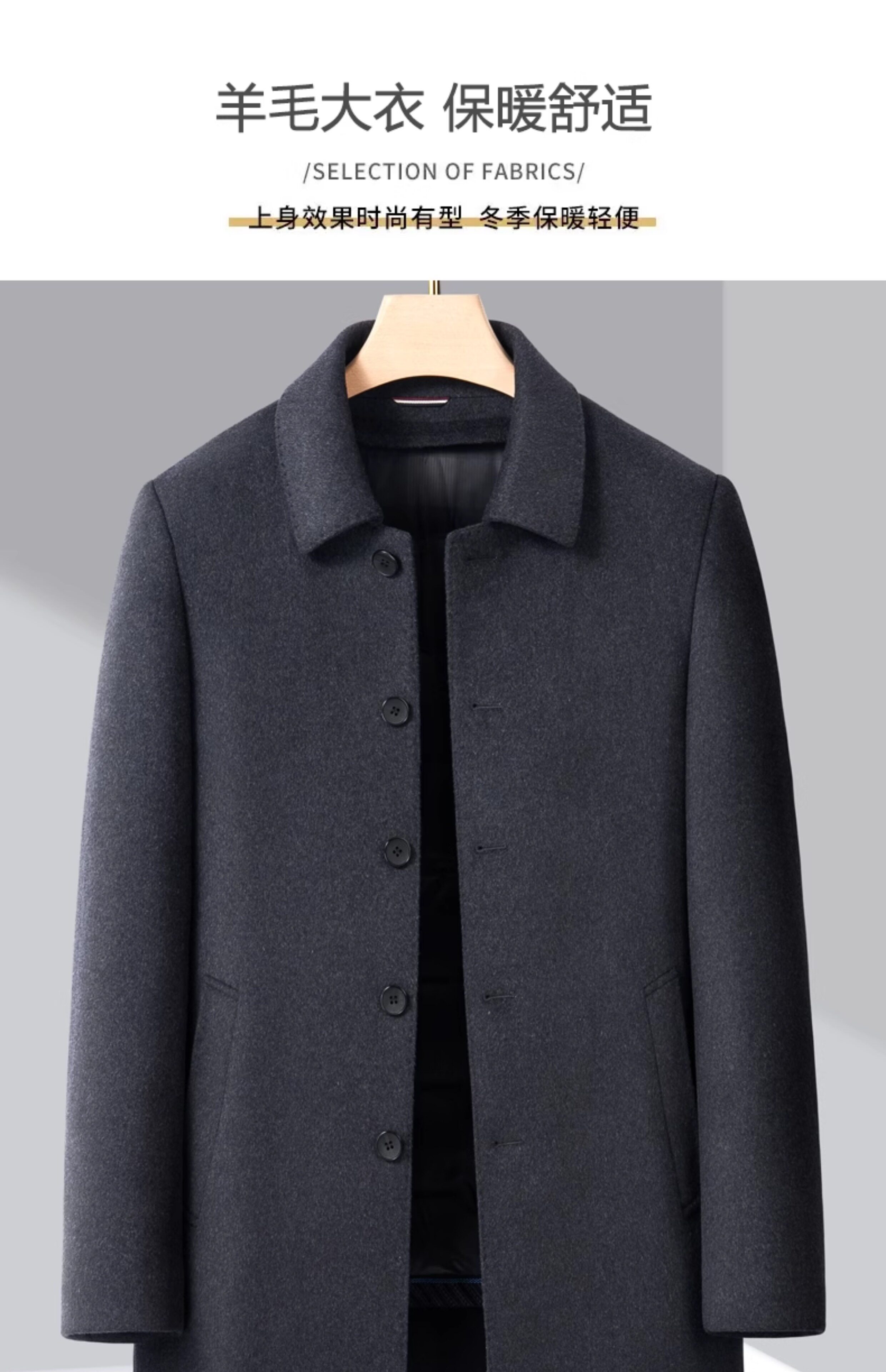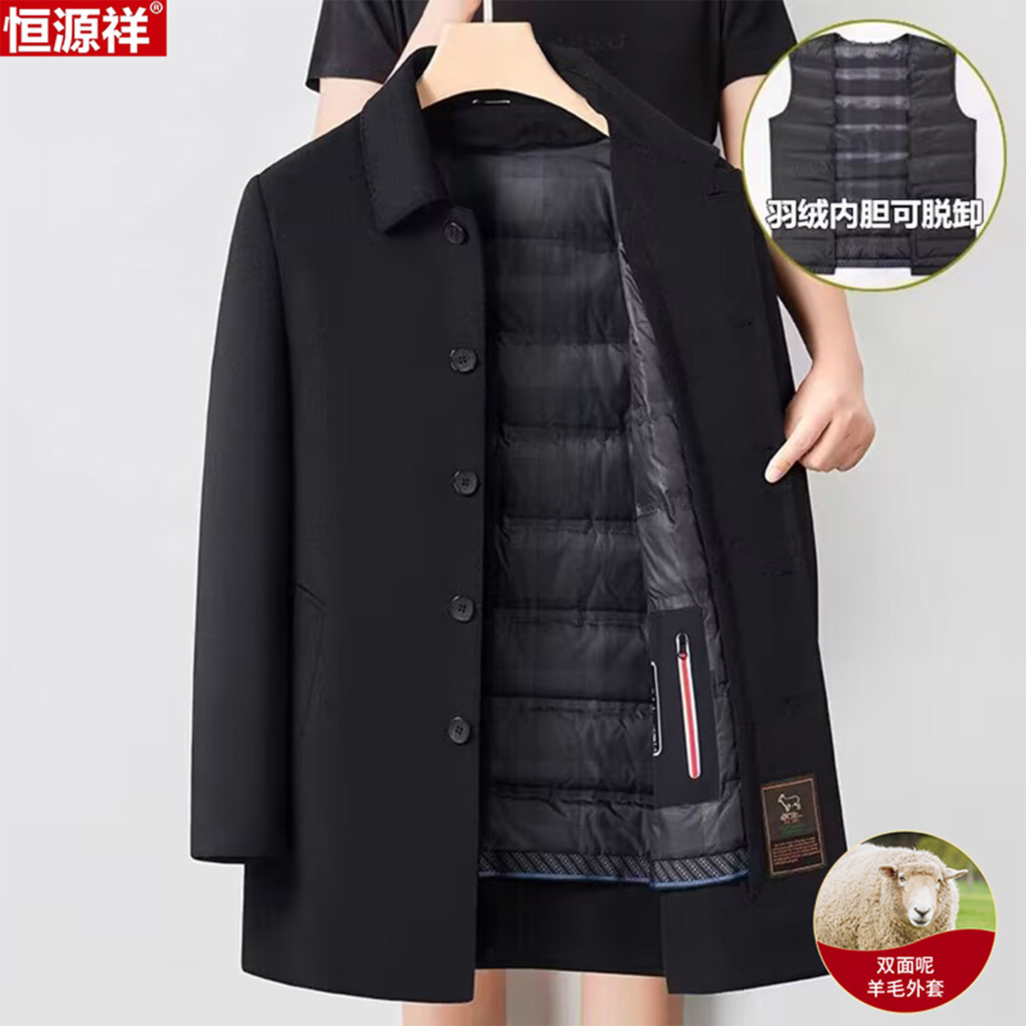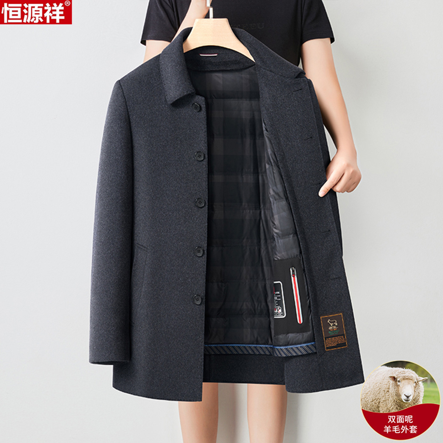 恒源祥 Демисезонное шерстяное пальто, шерстяной вкладыш с пухом, двусторонний плащ