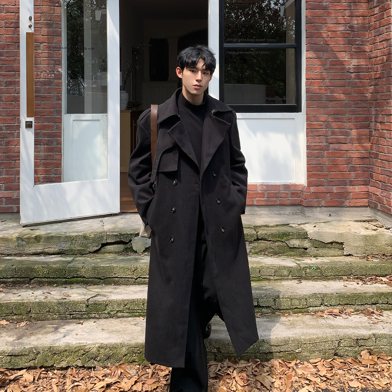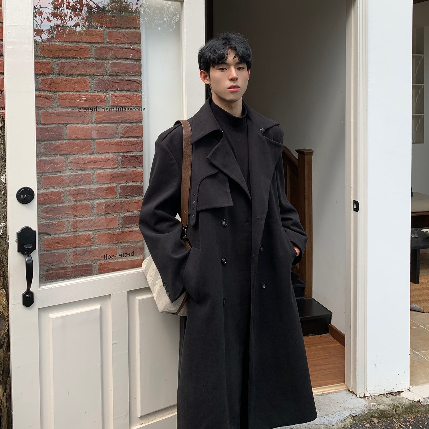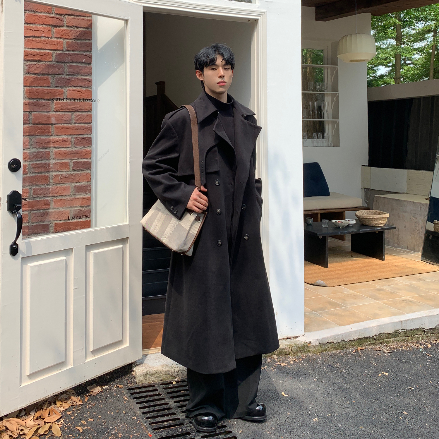 Корейское шерстяное пальто, плащ, в британском стиле, свободный крой, оверсайз