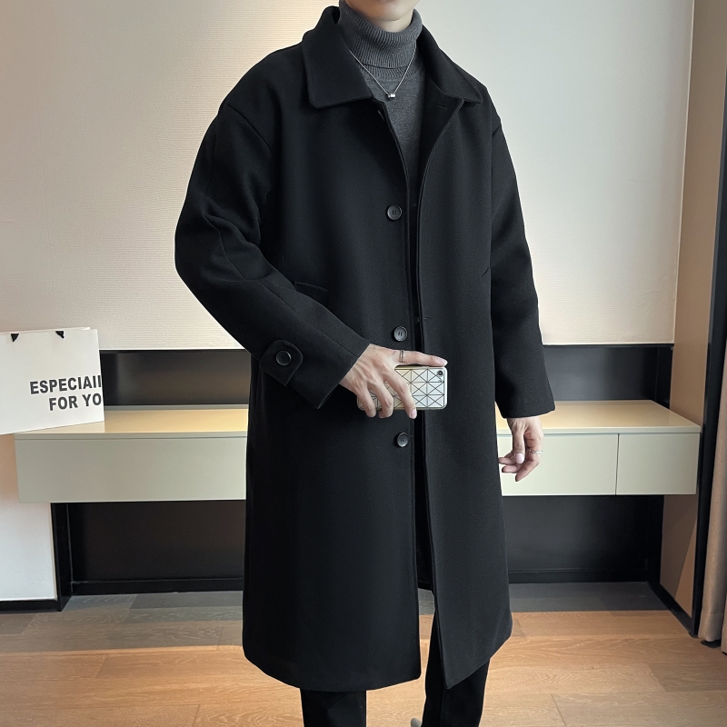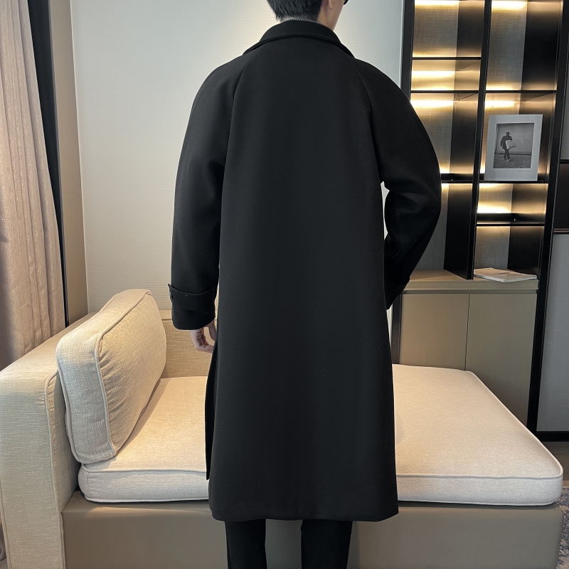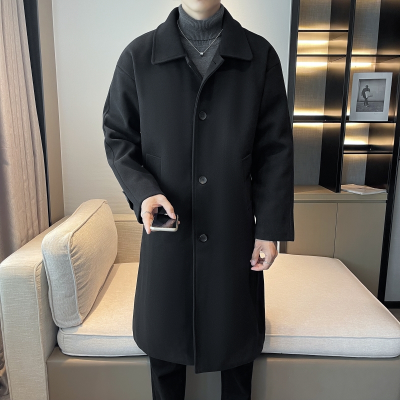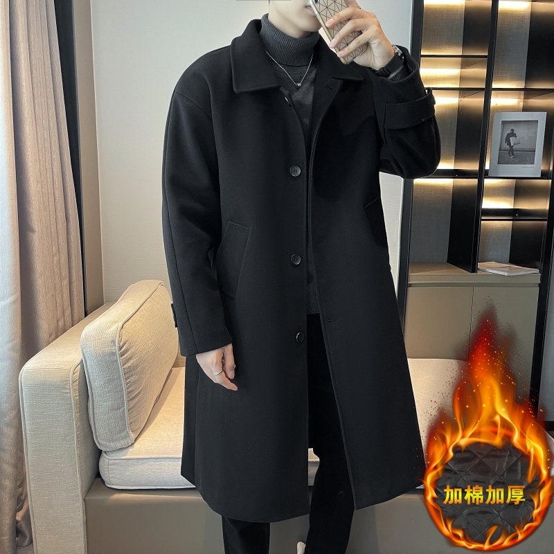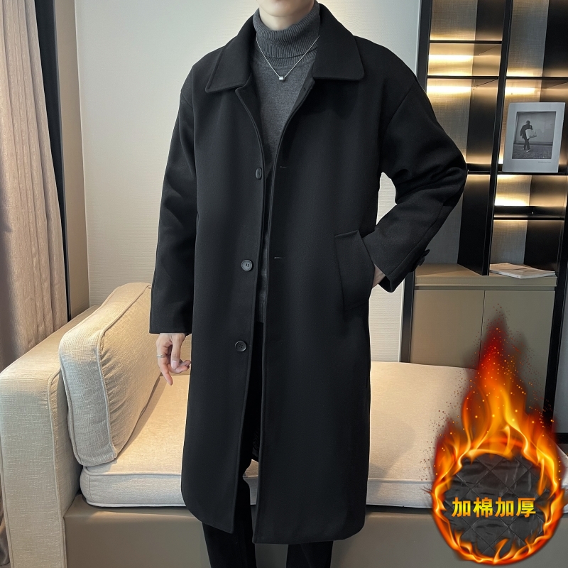 Демисезонное черное шерстяное пальто для отдыха, длинный плащ, увеличенная толщина, средней длины