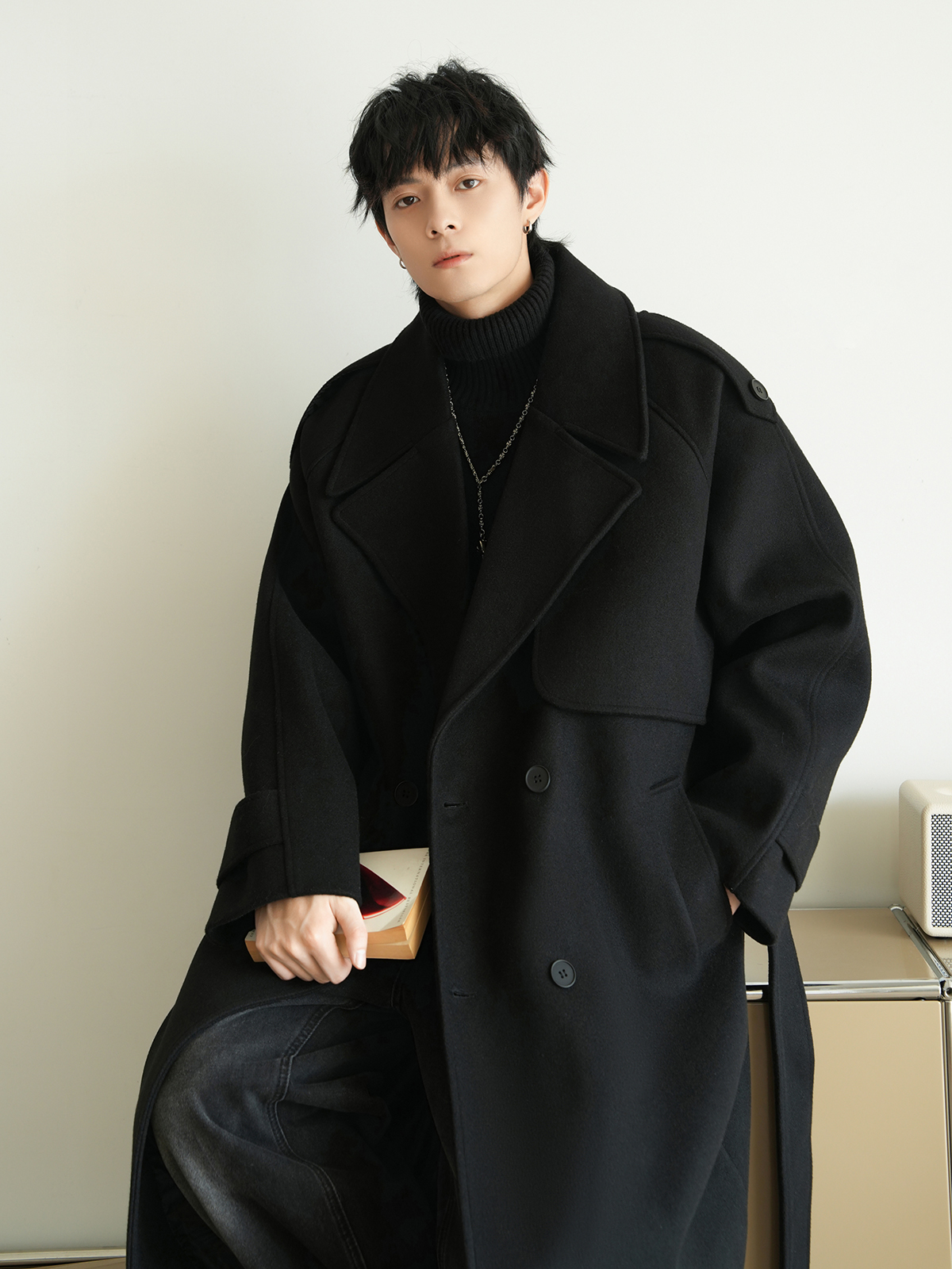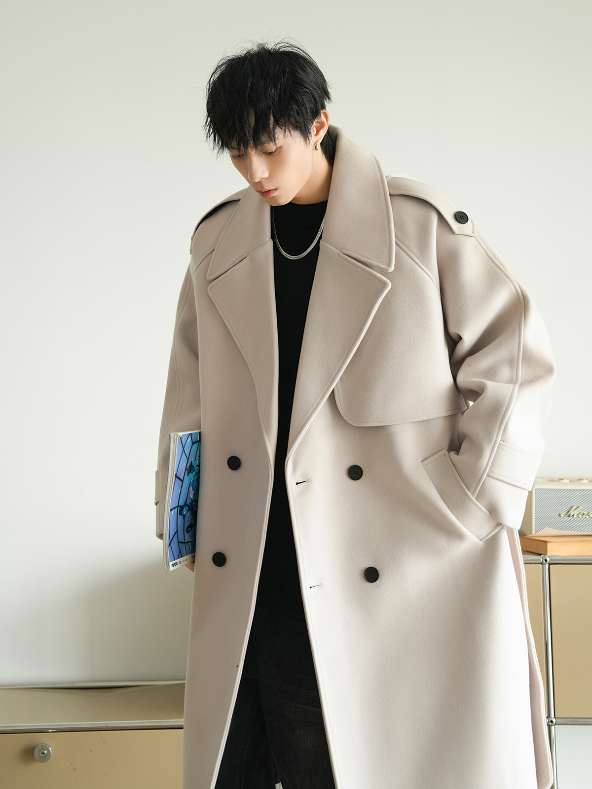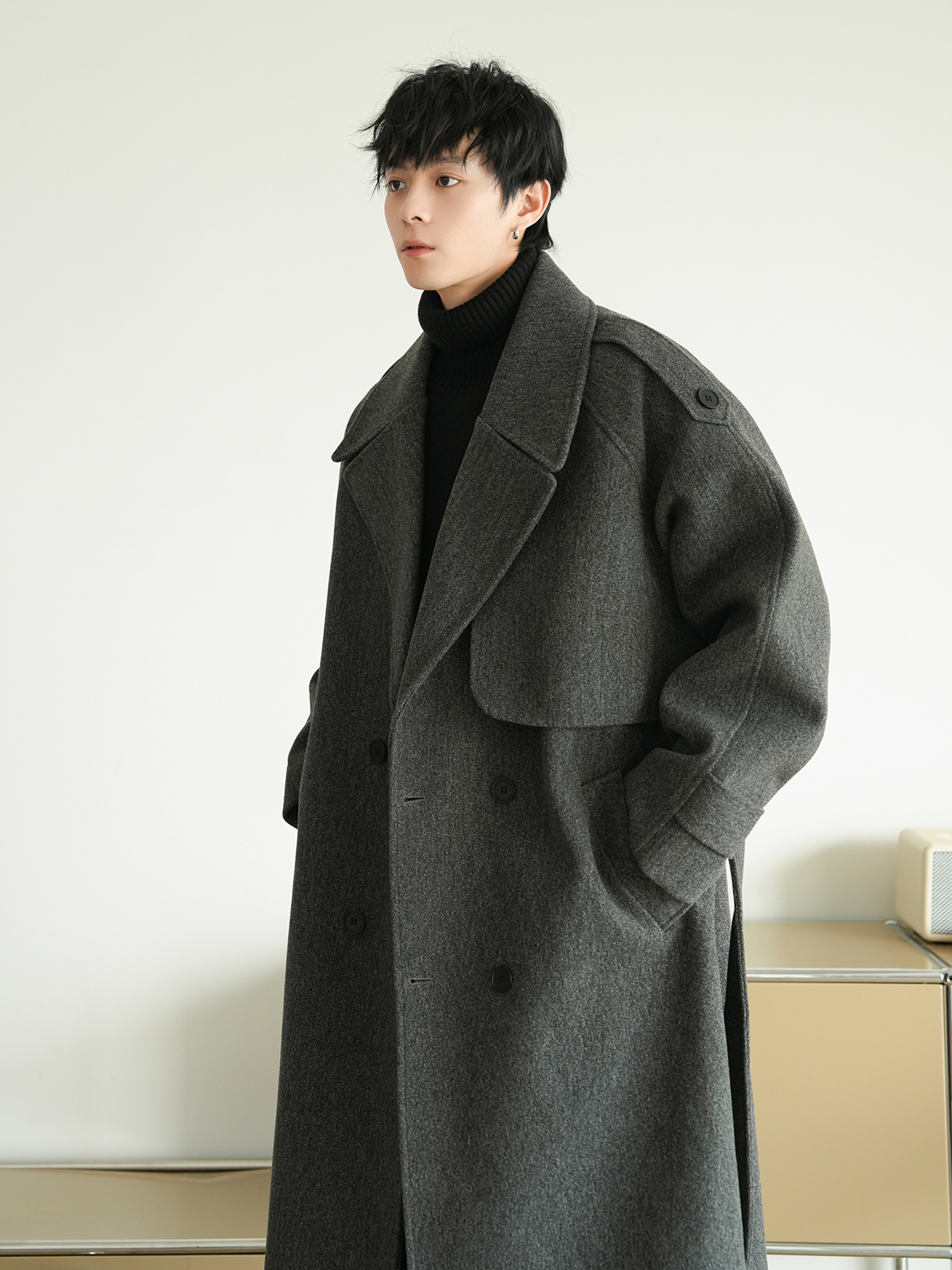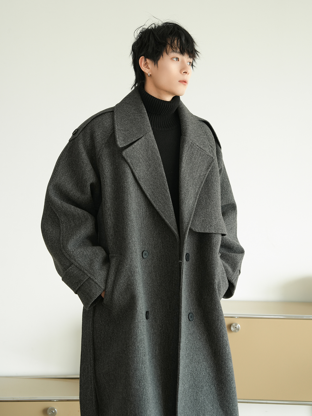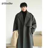 Корейская шерстяная верхняя одежда средней длины на осень, тяжелая модная брендовая верхняя одежда для пар, уличные повседневные свободные топы