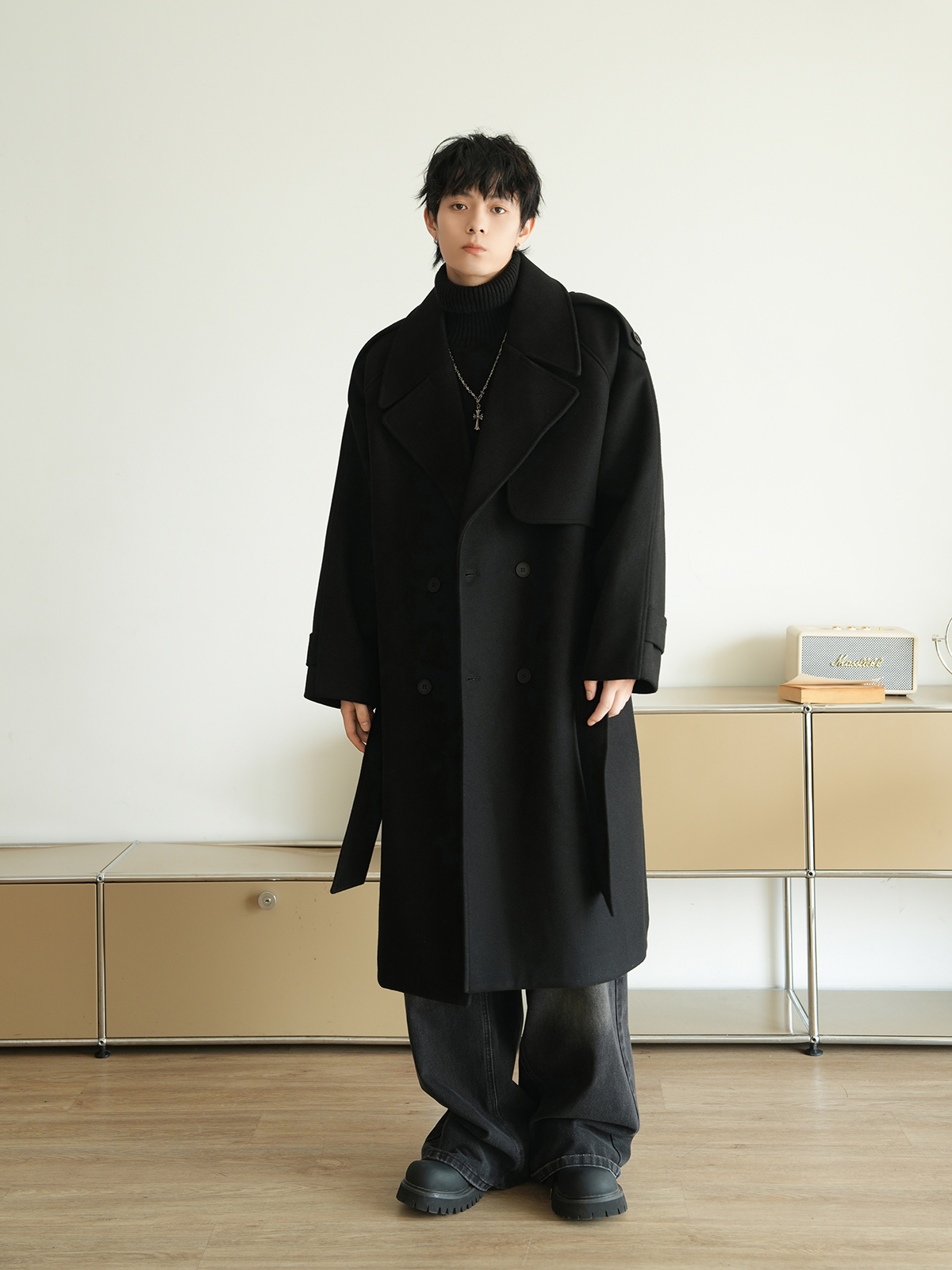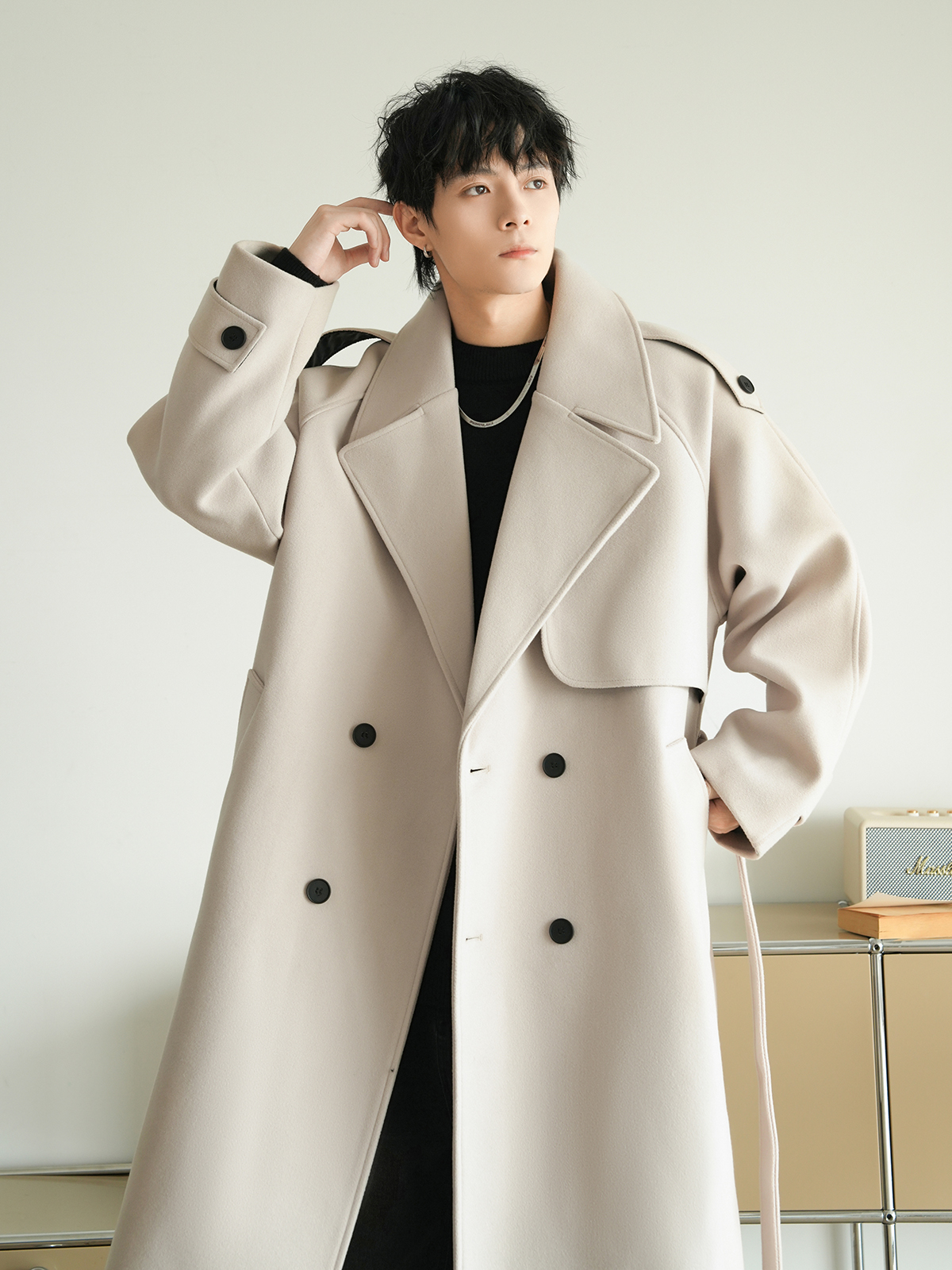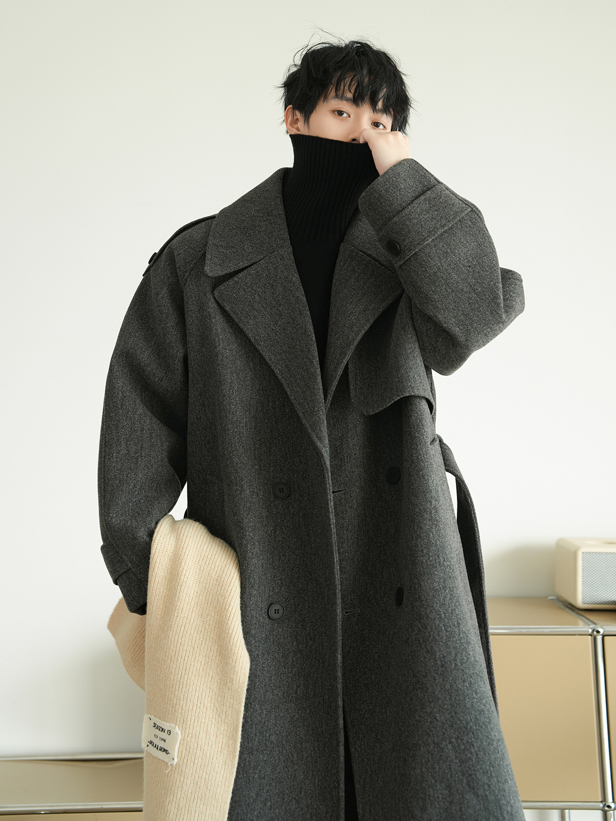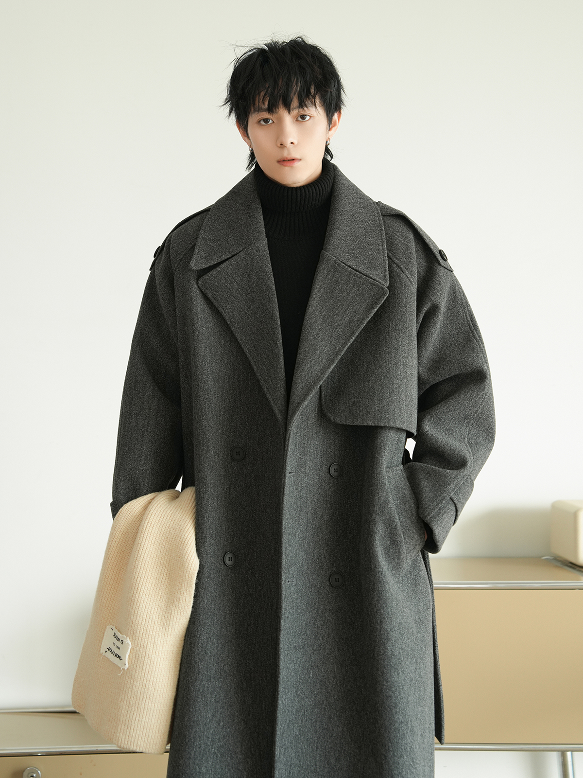Корейская шерстяная верхняя одежда средней длины на осень, тяжелая модная брендовая верхняя одежда для пар, уличные повседневные свободные топы