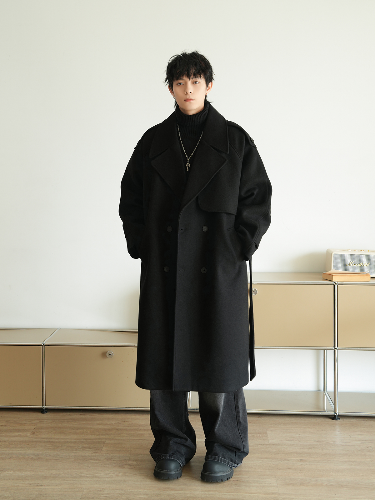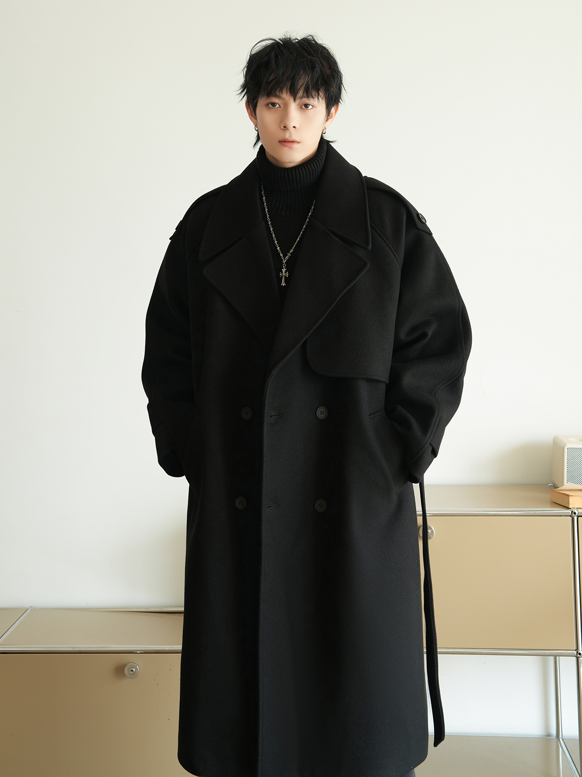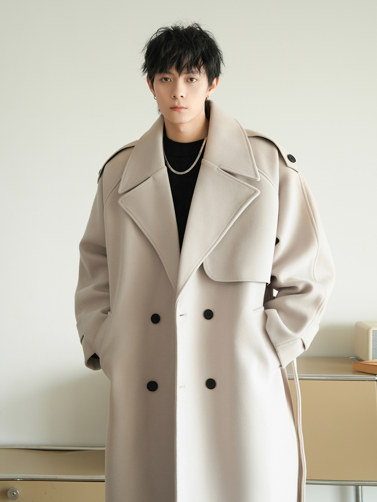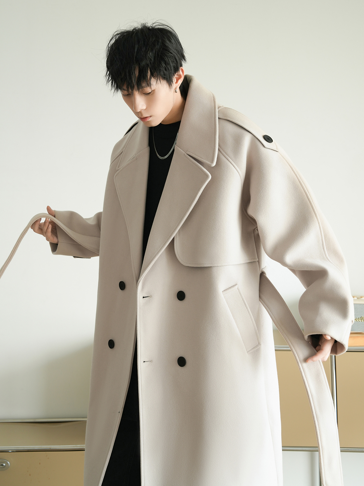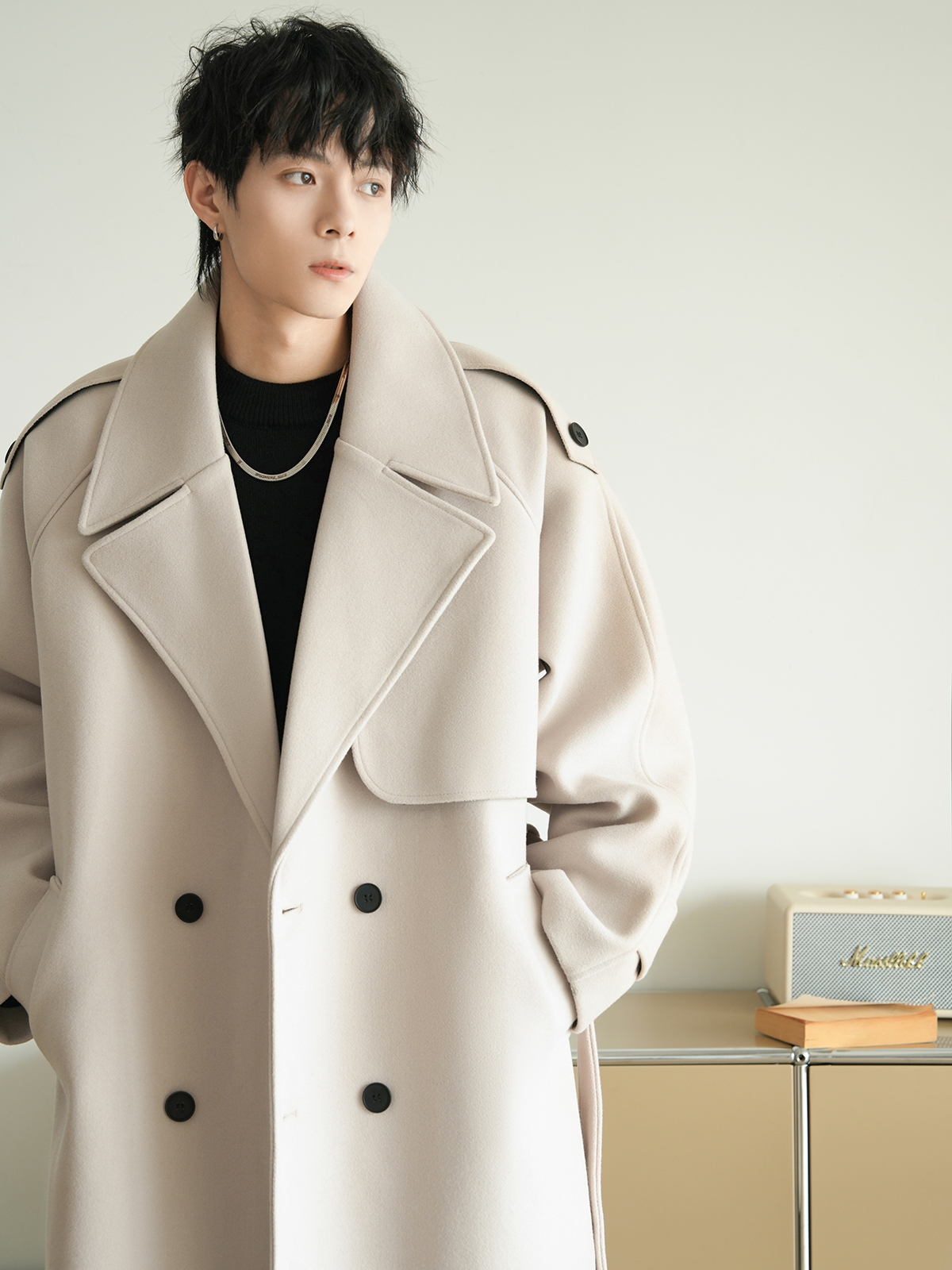 Корейская шерстяная верхняя одежда средней длины на осень, тяжелая модная брендовая верхняя одежда для пар, уличные повседневные свободные топы