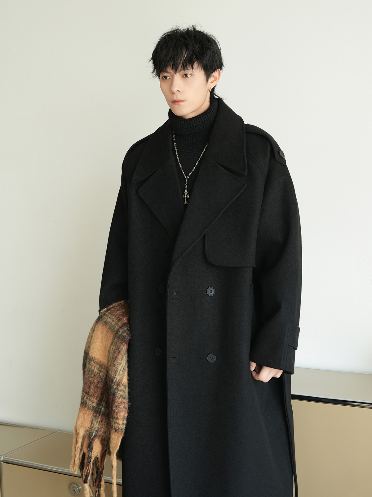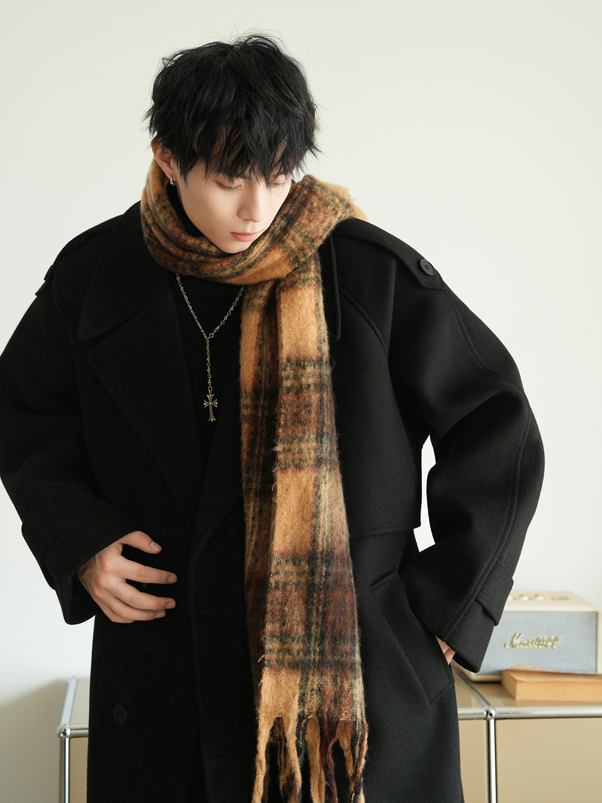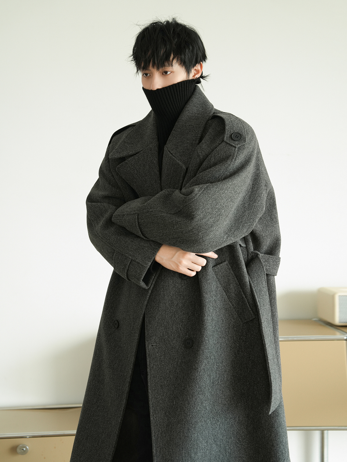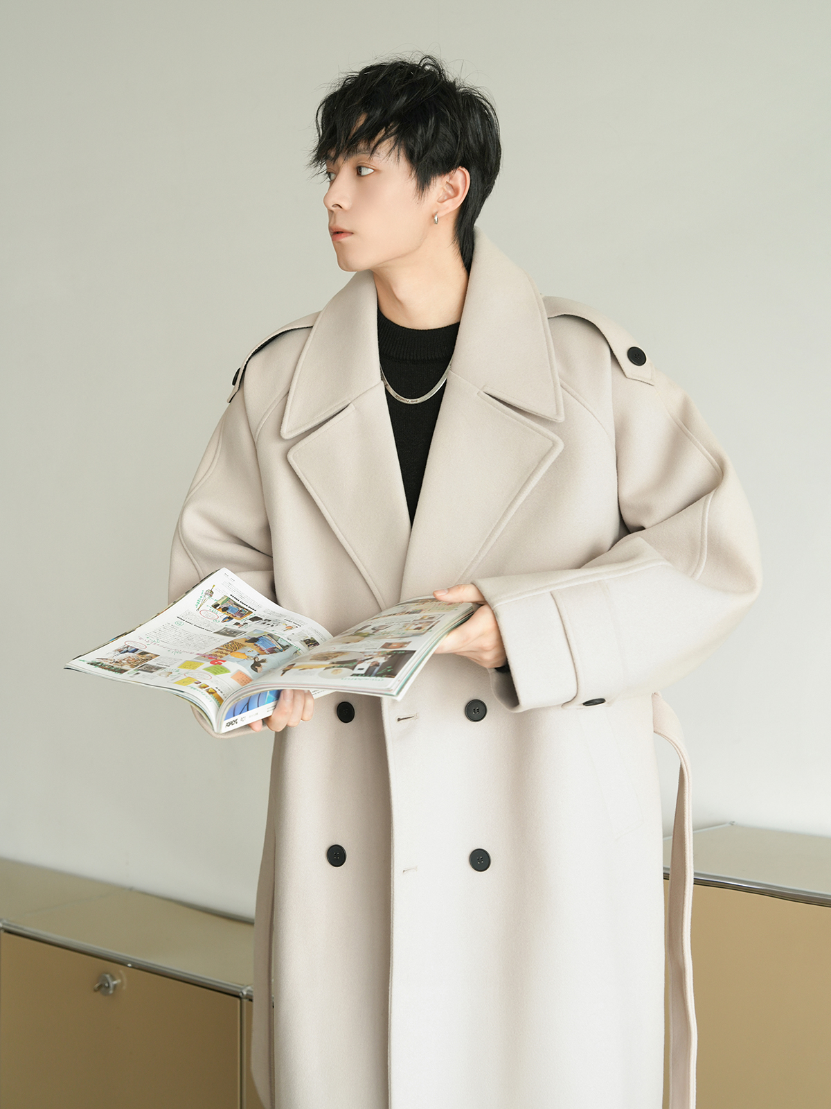 Корейская шерстяная верхняя одежда средней длины на осень, тяжелая модная брендовая верхняя одежда для пар, уличные повседневные свободные топы